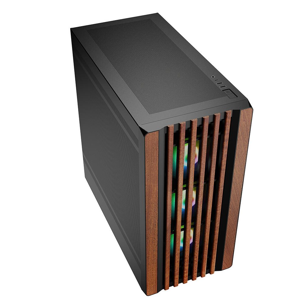 Mit seiner eleganten Frontblende mit Holzverkleidung setzt das Rebel C70M RGB stilvolle Akzente im Gaming-, Wohn- oder Arbeitszimmer. Zahlreiche Perforationen im Gehäuse sowie modulare Einbauoptionen schaffen Platz für bis zu elf 120-Millimeter-Lüfter oder zwei Radiatoren und sorgen neben einer herausragenden Optik für eine optimale Kühlleistung selbst für Highend-Setups. Mit zukunftssicheren USB-C- und TRRS-Anschlüssen wird auch die Produktivität jederzeit optimal unterstützt.