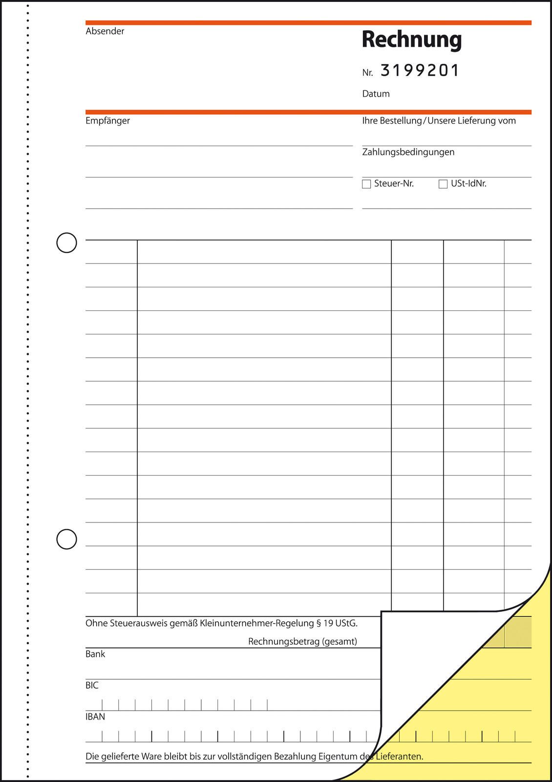 - Formular: Rechnung für Kleinunternehmer mit fortlaufenden Nummern (ohne MwSt.-Ausweis)