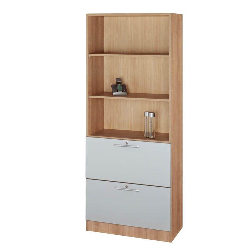 Der HAMMERBACHER Regalschrank 7300 RE in edlem Nussbaum und Silber ist die perfekte Lösung für all deine Aufbewahrungsbedürfnisse. Mit einer großzügigen Anzahl von fünf Fächern bietet dieser Regalschrank genügend Platz, um Bücher, Akten oder Dekorationsartikel stilvoll zu präsentieren und zu organisieren. Die Maße von 80,0 x 42,0 x 200,4 cm machen ihn zu einem idealen Möbelstück für verschiedene Räume, sei es im Büro, im Wohnzimmer oder im Flur. Hergestellt aus hochwertiger Spanplatte, sorgt der Regalschrank nicht nur für eine ansprechende Optik, sondern auch für Stabilität und Langlebigkeit. Die Kombination aus Nussbaum und Silber verleiht dem Schrank eine moderne und zugleich zeitlose Eleganz, die sich harmonisch in jede Einrichtung einfügt. Die Relinggriffe aus Kunststoff sind nicht nur funktional, sondern setzen auch einen stilvollen Akzent. Ein besonderes Highlight des HAMMERBACHER Regals ist die Möglichkeit, es abzuschließen. Dies bietet dir zusätzliche Sicherheit für deine wertvollen Gegenstände und sorgt dafür, dass alles an seinem Platz bleibt. Der Regalschrank 7300 RE ist somit nicht nur ein praktisches, sondern auch ein sicheres Möbelstück. Dank des durchdachten Designs und der sorgfältigen Verarbeitung ist dieser Regalschrank nicht nur ein Blickfang, sondern auch eine Bereicherung für dein Zuhause oder dein Büro. Die klare Linienführung und die ansprechenden Farben machen ihn zu einem vielseitigen Möbelstück, das sich leicht in verschiedene Einrichtungsstile integrieren lässt. Lass dich von der Funktionalität und dem eleganten Design des HAMMERBACHER Regalschrank 7300 RE überzeugen.