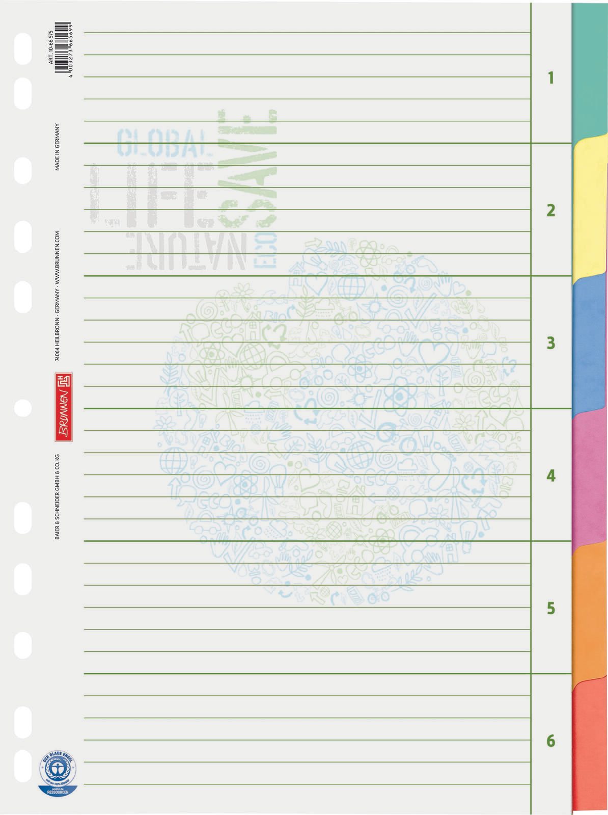 Das BRUNNEN Ordnerregister ist aus hochwertigem Karton gefertigt, was nicht nur für eine ansprechende Optik sorgt, sondern auch für eine hohe Stabilität und Langlebigkeit. Die Universal-Lochung ermöglicht eine problemlose Nutzung in jedem gängigen Ringbuch oder Ordner, sodass du flexibel in der Handhabung bleibst.