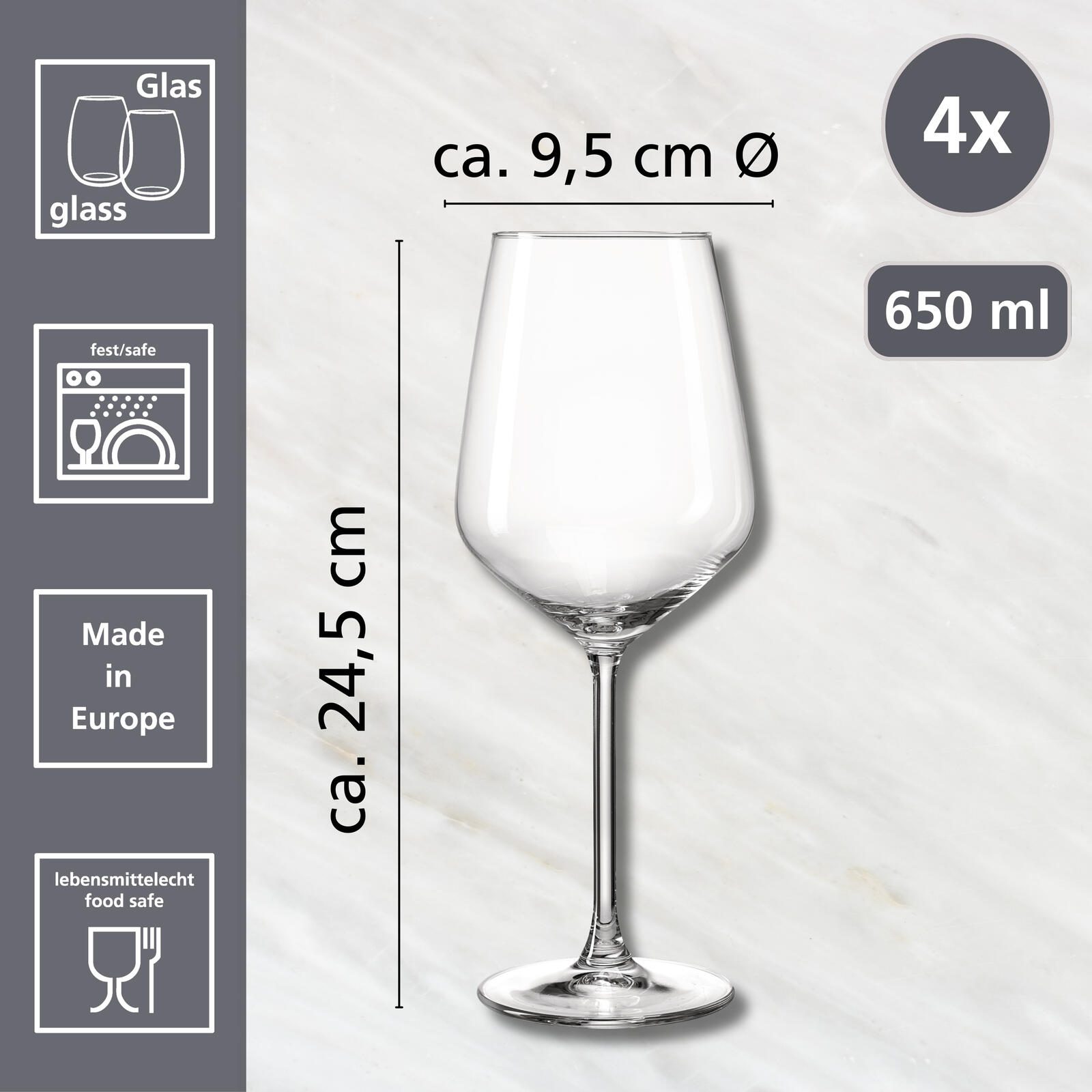 Die Weißweingläser der Serie Rumba von Ritzenhoff & Breker sind speziell für den Genuss von Weißwein konzipiert. Jedes Glas bietet ein Fassungsvermögen von 650 ml, was ausreichend Platz für ein großzügiges Glas Wein lässt. Die Gläser sind aus transparentem Glas gefertigt, wodurch die Farbe und Klarheit des Weins optimal zur Geltung kommen.