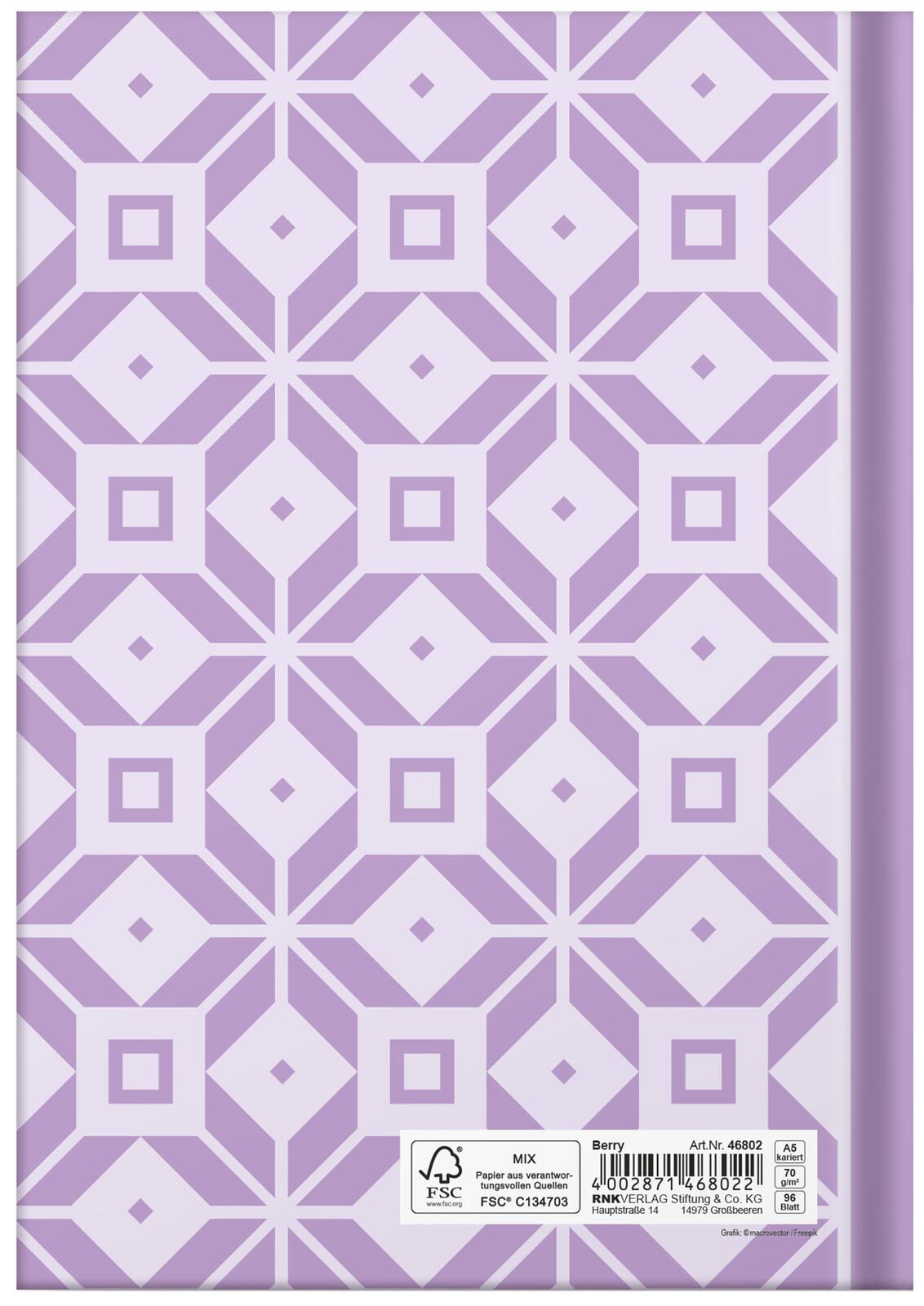 RNK-Verlag Notizbuch RNK Notizbuch Berry A5 kar. DIN A5 kariert lila