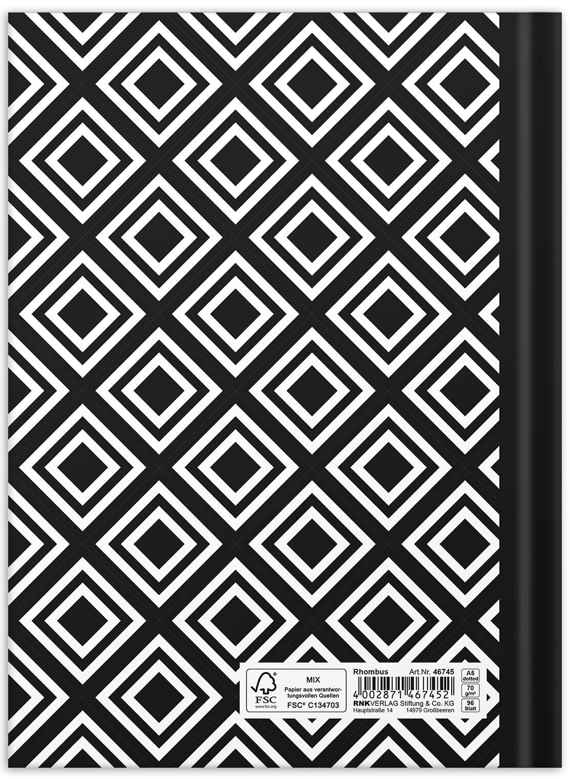 RNK-Verlag Notizbuch RNK Notizbuch Rhombus A5 kar. DIN A5 kariert schwarz/weiß