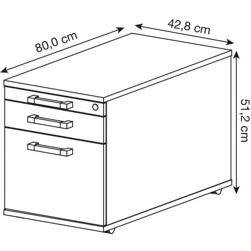 Das zeitlose Design in ahorn-Farbton fügt sich harmonisch in jede Büroeinrichtung ein. Mit den Maßen von 42,8 x 80,0 x 51,2 cm bietet der Rollcontainer ausreichend Stauraum für deine Unterlagen und Büromaterialien.