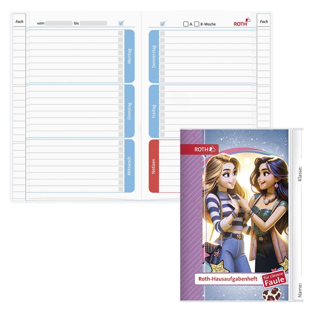 ROTH Hausaufgabenheft für clevere Faule Best Friends liniert DIN A5 104 Blätter