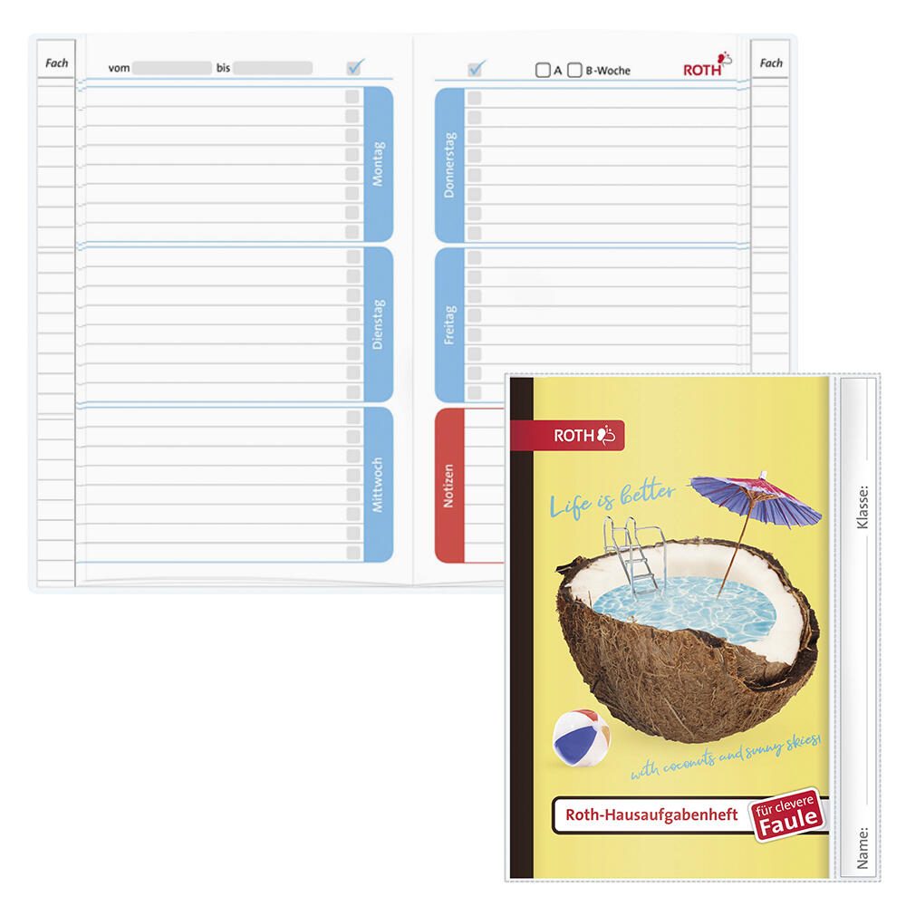 ROTH Hausaufgabenheft für clevere Faule Coconut Pool liniert DIN A5 104 Blätter