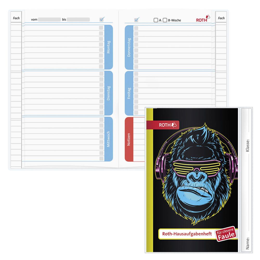 ROTH Hausaufgabenheft für clevere Faule Cool Monkey liniert DIN A5 104 Blätter