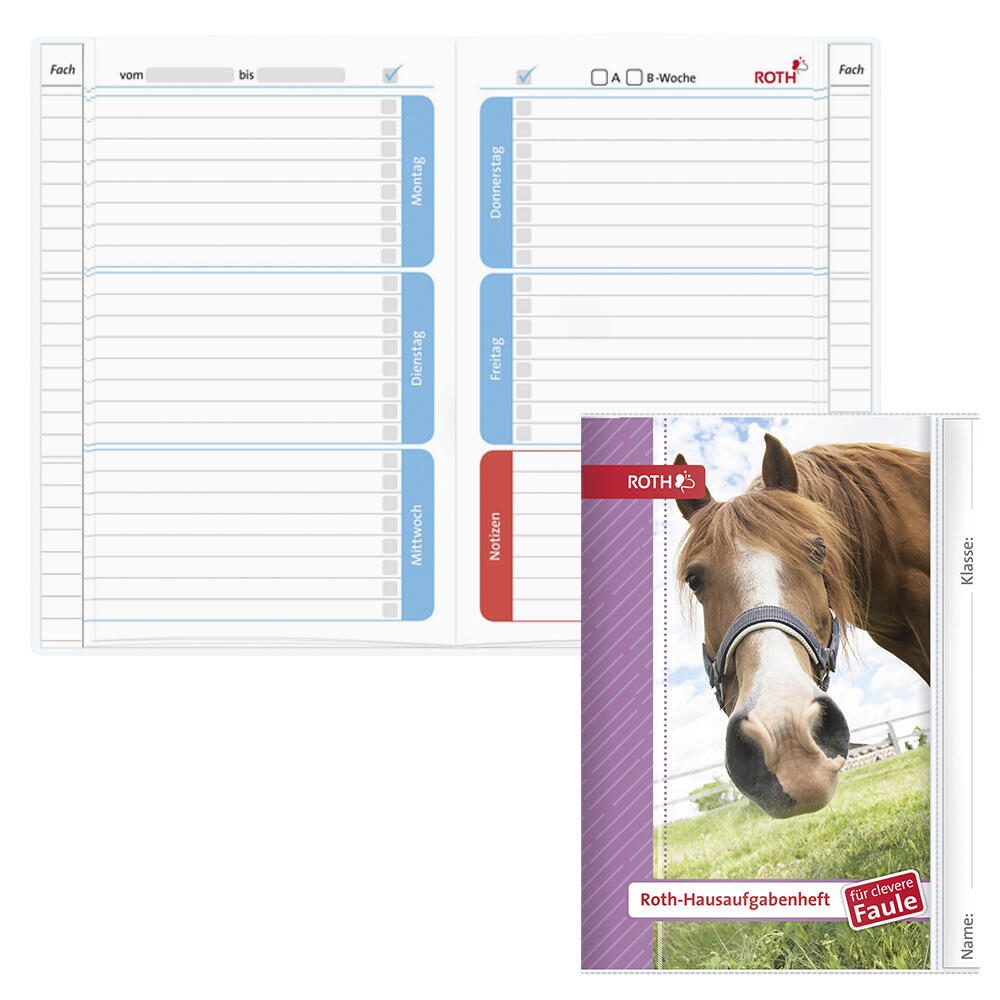 ROTH Hausaufgabenheft für clevere Faule Pferd liniert DIN A5 104 Blätter