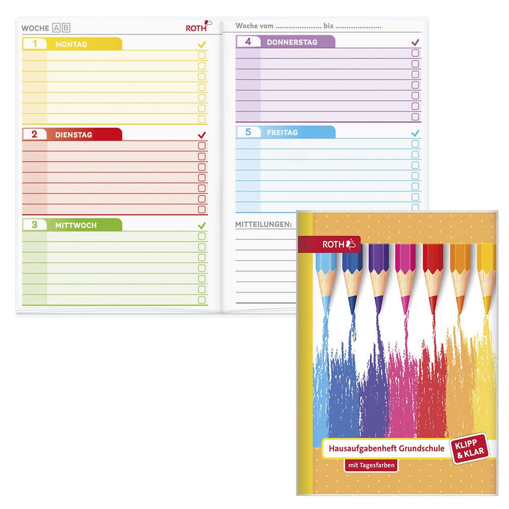 ROTH Hausaufgabenheft Klipp & Klar Buntstifte liniert DIN A5 96 Blätter