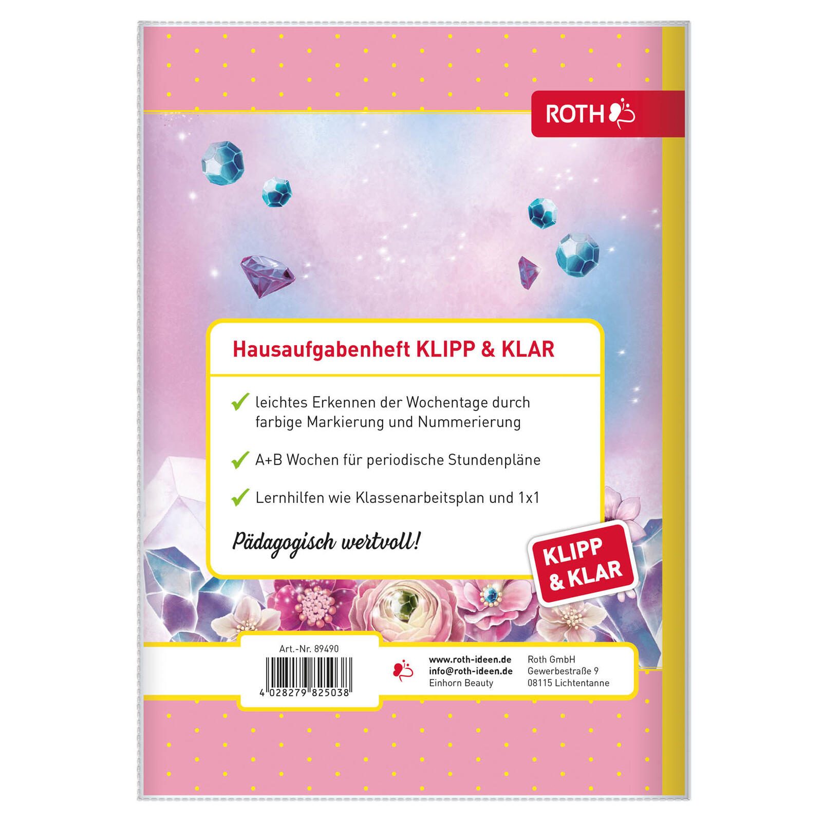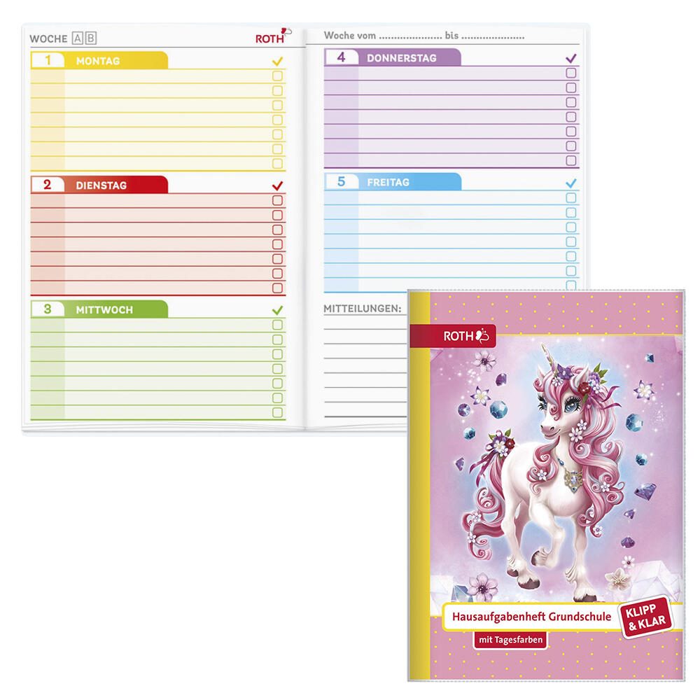 ROTH Hausaufgabenheft Klipp & Klar Einhorn liniert DIN A5 96 Blätter