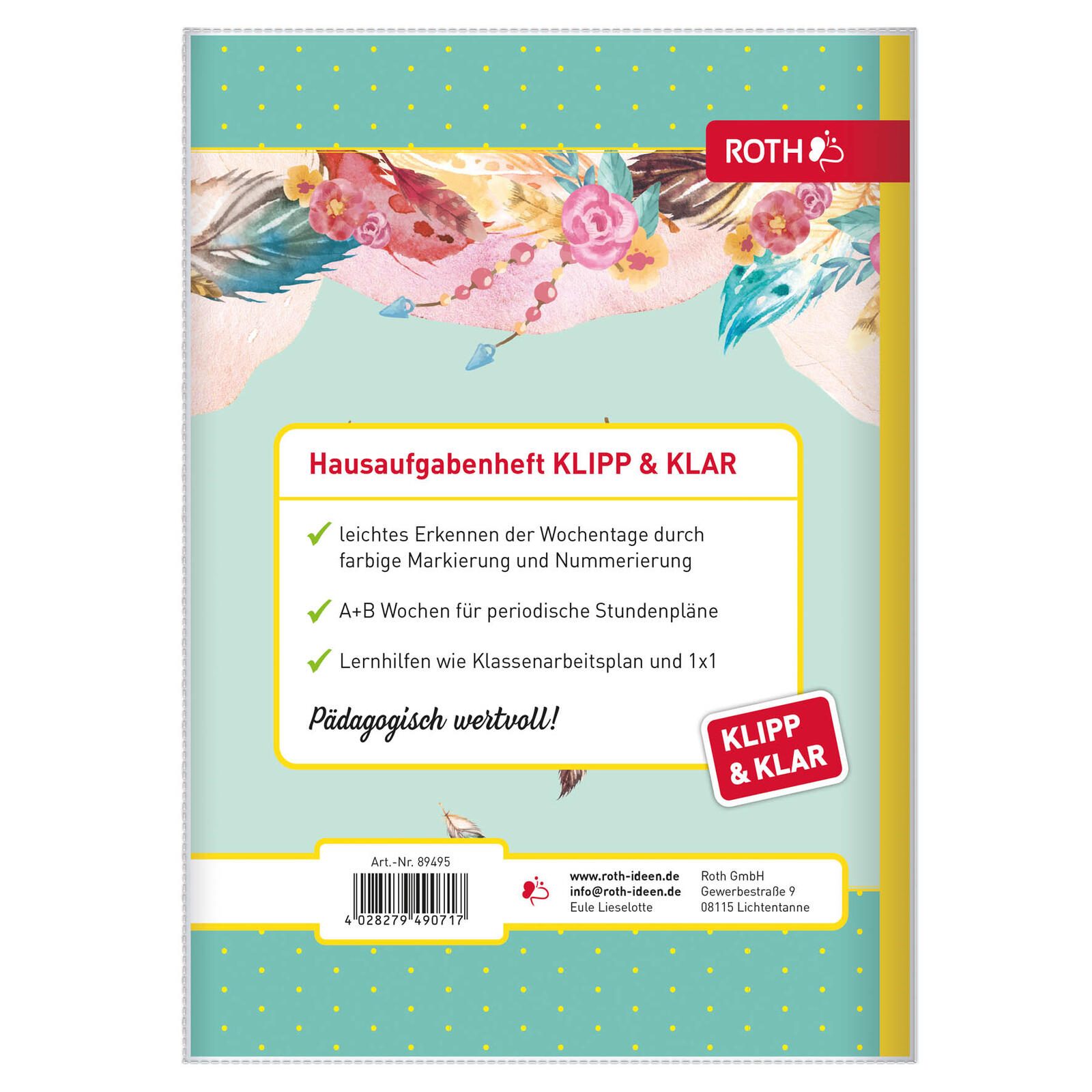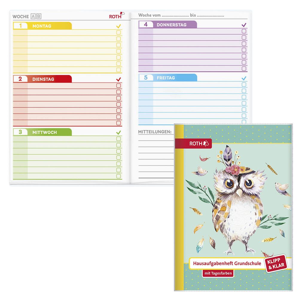 ROTH Hausaufgabenheft Klipp & Klar Eule Lieselot liniert DIN A5 96 Blätter