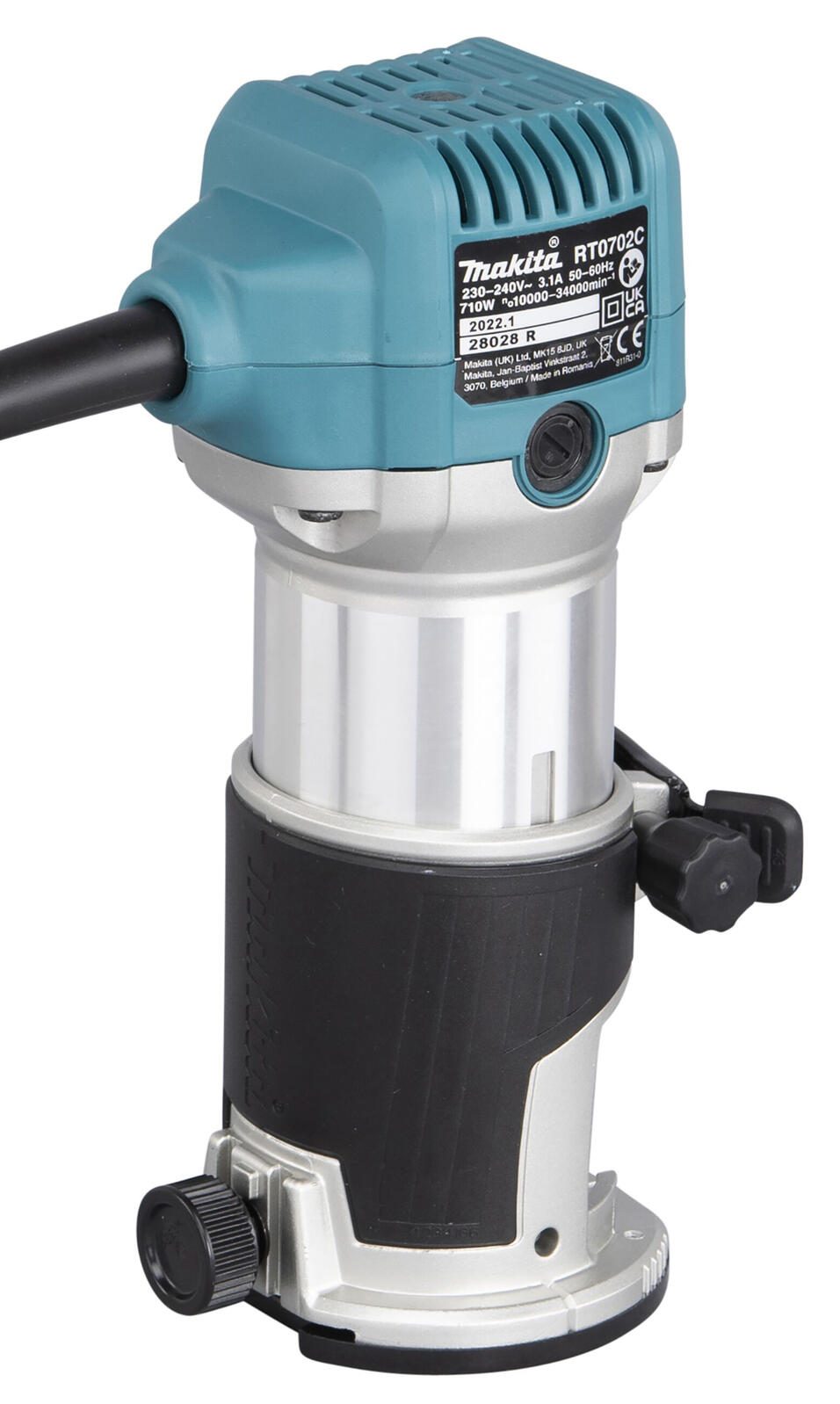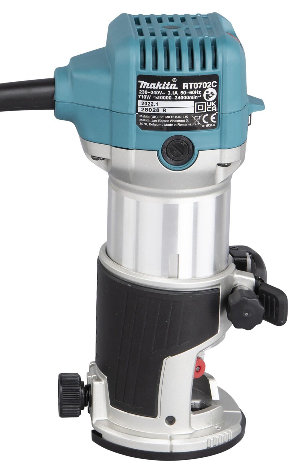 Die makita Oberfräse RT0702CX2J ist ein leistungsstarkes Werkzeug, das sich ideal für präzise Fräsarbeiten eignet. Mit ihrer regelbaren Drehzahl über das Stellrad ermöglicht sie eine exakte Anpassung an verschiedene Materialien und Anwendungen, was Ihnen eine hohe Flexibilität bei der Bearbeitung bietet. Die integrierte Konstantelektronik sorgt dafür, dass die Drehzahl auch unter Belastung konstant bleibt, was zu gleichmäßigen und professionellen Ergebnissen führt. Ein weiteres herausragendes Merkmal der RT0702CX2J ist der Sanftanlauf, der ein sanftes Hochlaufen des Motors gewährleistet und somit ein ungewolltes Verreißen des Werkzeugs beim Start verhindert. Dies erhöht nicht nur die Sicherheit, sondern auch die Präzision während des Fräsens. Das stabile Gehäuse aus Aluminium verleiht der Oberfräse eine robuste Bauweise, die auch bei intensiver Nutzung eine lange Lebensdauer garantiert. In einem ansprechenden blau/schwarzen Farbton gestaltet, fügt sich die makita Oberfräse harmonisch in jede Werkstatt ein. Die Netzbetrieb-Betriebsart sorgt dafür, dass Sie jederzeit auf eine zuverlässige Energiequelle zurückgreifen können, ohne sich um die Akkulaufzeit kümmern zu müssen. Die Oberfräse gehört zur Produktunterart der elektrischen Oberfräsen und ist somit speziell für präzise Fräsarbeiten konzipiert. Die Qualität und das durchdachte Design der makita RT0702CX2J machen sie zu einem unverzichtbaren Werkzeug für Heimwerker und Profis gleichermaßen, die Wert auf Effizienz und Genauigkeit legen.Technische Daten