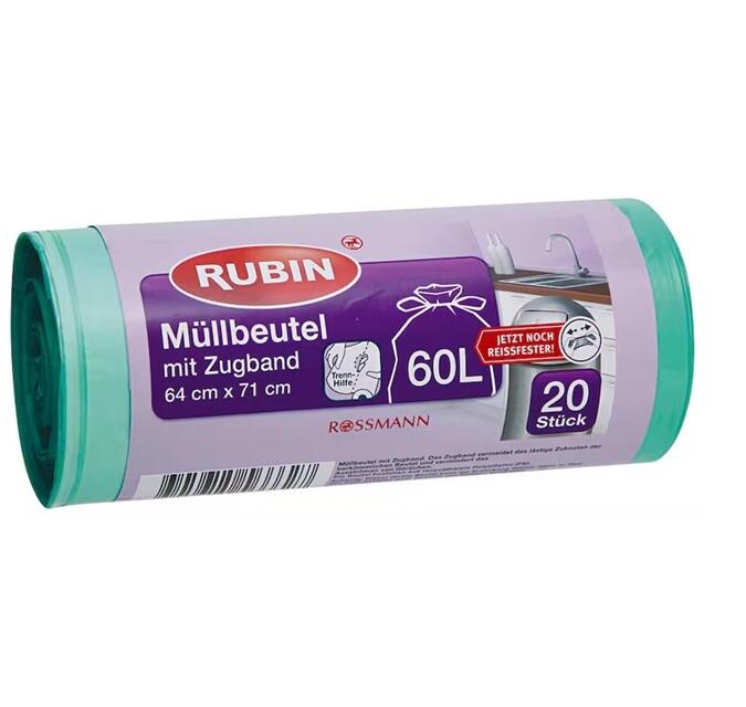 Die RUBIN Müllbeutel 60,0 l in ansprechendem grün sind die ideale Lösung für deine Abfallentsorgung. Mit einem großzügigen Fassungsvermögen von 60,0 Litern bieten diese Müllbeutel ausreichend Platz für eine Vielzahl von Abfällen, sei es im Haushalt, im Büro oder bei Veranstaltungen. Die praktische Verpackungseinheit umfasst 20 Stück, sodass du immer ausreichend Vorrat zur Hand hast.