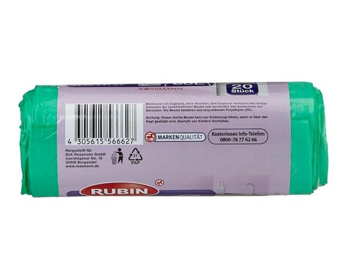 Hergestellt aus hochwertigem Polyethylen (PE), zeichnen sich die RUBIN Müllbeutel durch ihre Robustheit und Strapazierfähigkeit aus. Das Material sorgt dafür, dass die Beutel auch bei schwerem Inhalt nicht reißen oder durchstochen werden. Dank der stabilen Verarbeitung sind sie besonders zuverlässig und bieten dir die Sicherheit, dass dein Abfall sicher verstaut ist.