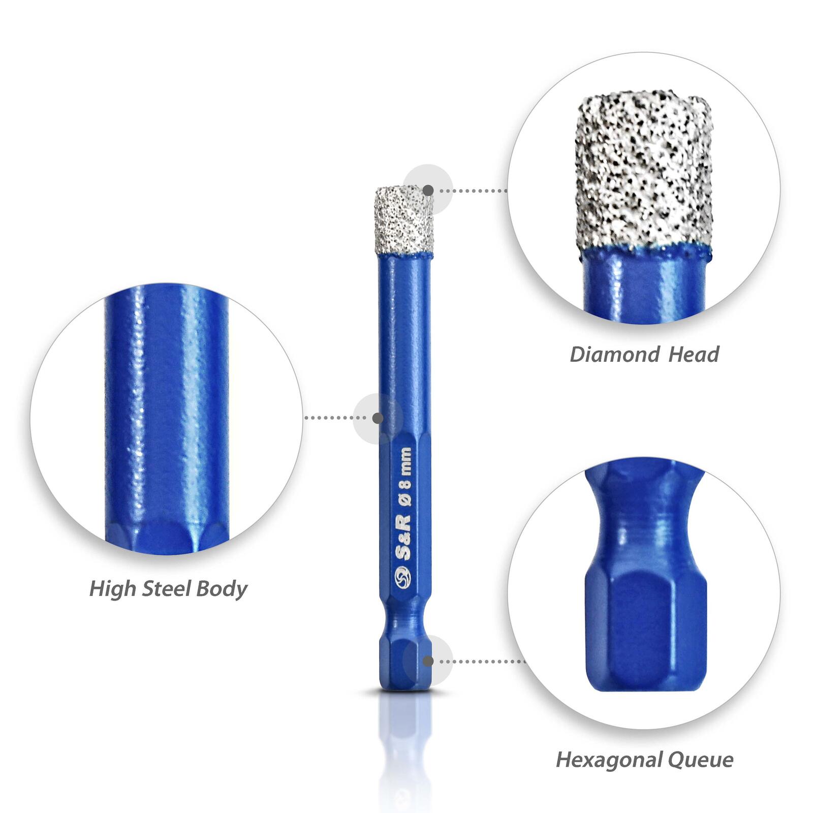 Das kompakte 4-teilige Set ist Teil der Bohrer- und Schrauberbit-Serie von S&R und bietet eine praktische Zusammenstellung für den sofortigen Einsatz. Es überzeugt durch Robustheit, hohe Standzeit und eine einfache Handhabung, die auch bei längeren Arbeiten Komfort und Sicherheit gewährleistet. Mit diesem Set sind Sie bestens ausgestattet, um präzise Bohrungen in einer Vielzahl von harten und empfindlichen Materialien durchzuführen.