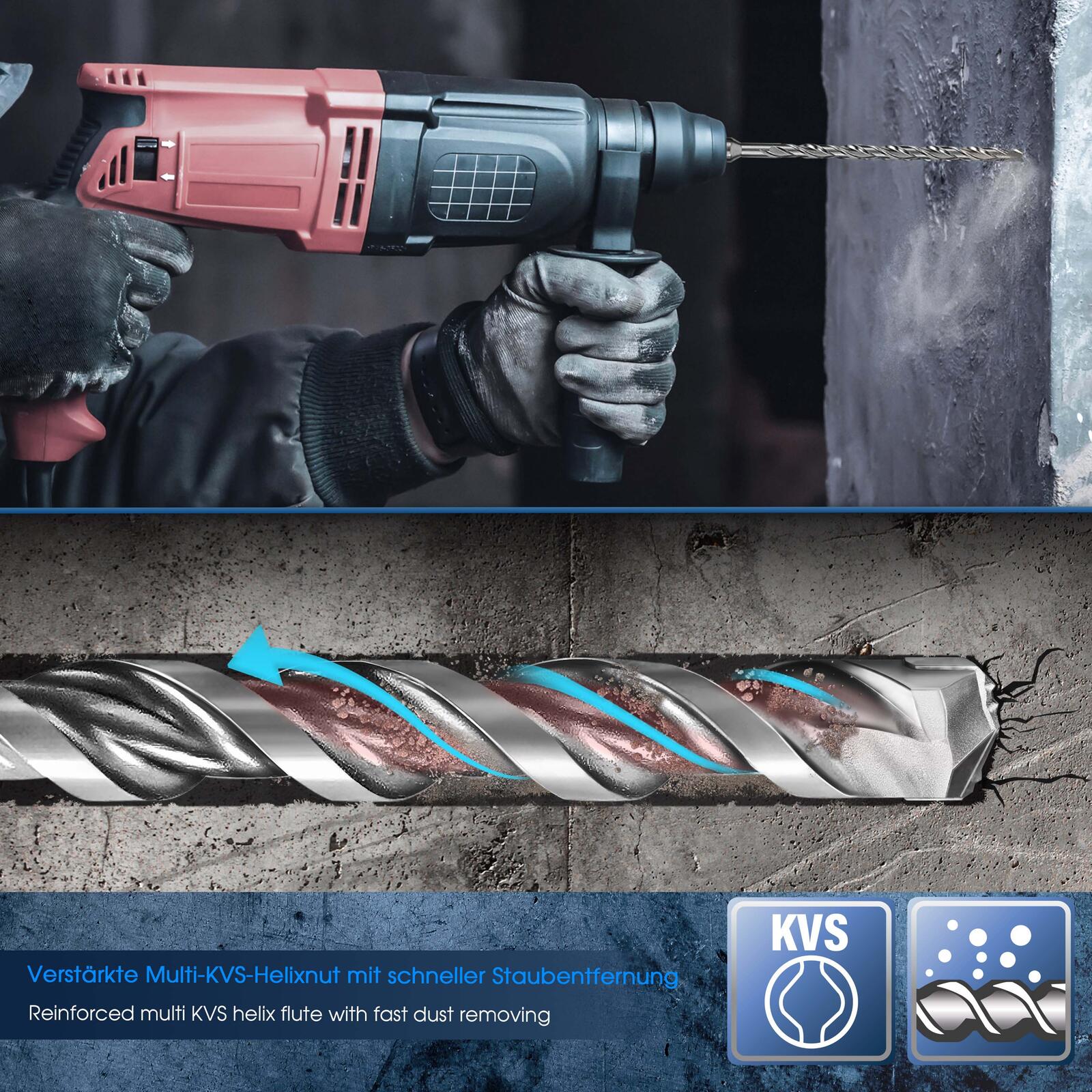 Dank der SDS4 Plus Aufnahme bieten die Bohrer eine sichere Verbindung und optimale Kraftübertragung, was die Bohrleistung deutlich verbessert und die Arbeit erleichtert. Die sorgfältige Auswahl der Materialien und die präzise Fertigung sorgen für eine lange Lebensdauer und hohe Widerstandsfähigkeit auch bei intensivem Gebrauch.