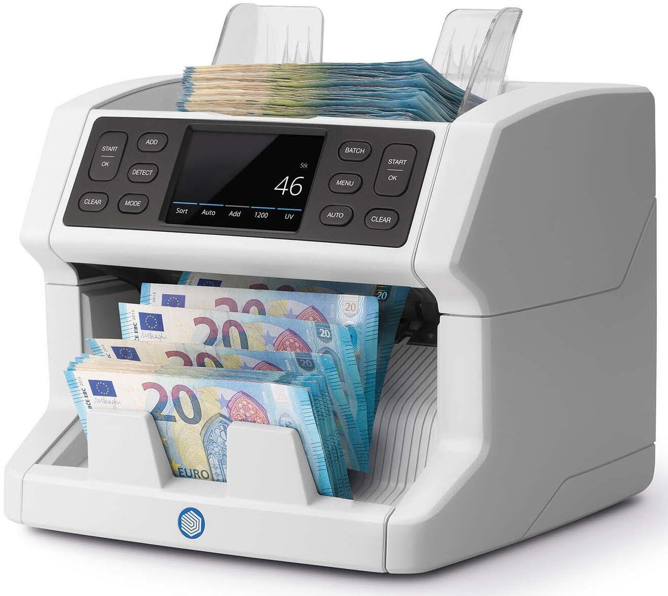 Der Safescan Banknotenzähler 2850 ist die ideale Lösung für alle, die eine effiziente und präzise Bargeldverarbeitung benötigen. Mit seinem hochauflösenden Touchscreen und einer mehrsprachigen Benutzeroberfläche bietet er eine benutzerfreundliche Erfahrung, die es dir ermöglicht, schnell und einfach durch die verschiedenen Funktionen zu navigieren. Die elegante lichtgraue Farbe fügt sich nahtlos in jede Umgebung ein und sorgt für ein modernes Erscheinungsbild. Dieser Banknotenzähler unterstützt alle Währungen und hat eine beeindruckende Kapazität von bis zu 500 Banknoten im Einzug. Das bedeutet, dass du auch große Mengen an Bargeld in kürzester Zeit verarbeiten kannst. Mit einer Geschwindigkeit von bis zu 1.500 Banknoten pro Minute ist der Safescan 2850 ein wahrer Leistungsträger, der dir hilft, Zeit zu sparen und den Arbeitsablauf zu optimieren. Die Echtheitsprüfung erfolgt durch fortschrittliche Technologien, die UV, MG und TD nutzen. Dadurch kannst du sicher sein, dass die zählenden Banknoten echt sind, was das Risiko von Fälschungen erheblich reduziert. Der Betrieb erfolgt über das Stromnetz, was eine zuverlässige und konstante Leistung gewährleistet. Mit dem Safescan Banknotenzähler 2850 erhältst du ein leistungsstarkes und zuverlässiges Gerät, das dir hilft, deine Bargeldtransaktionen effizient zu verwalten. Die Kombination aus hoher Geschwindigkeit, großer Kapazität und umfassender Sicherheitsprüfung macht dieses Modell zu einer ausgezeichneten Wahl für Unternehmen und Einzelpersonen, die Wert auf Präzision und Sicherheit legen.Technische Daten