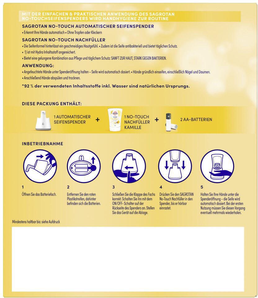 Mit der SAGROTAN® Flüssigseife im Spender entscheidest du dich für ein Produkt, das nicht nur reinigt, sondern auch pflegt. Erlebe die Kombination aus effektiver Hygiene und luxuriösem Duft, die deine Hände verwöhnt und gleichzeitig für ein hohes Maß an Sauberkeit sorgt.