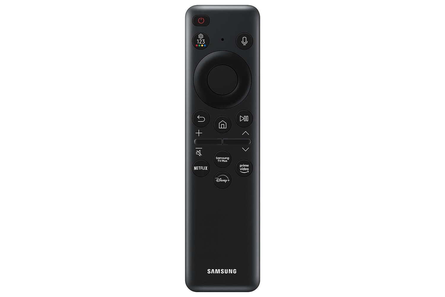 SolarCell RemoteIm Handumdrehen aufgeladen – mit einer Lichtquelle in deiner NäheEine Solarzelle auf der Rückseite der Fernbedienung absorbiert Licht, um den internen Akku aufzuladen. ¹ Um die Fernbedienung mit Solarenergie aufzuladen, lege die TV-Fernbedienung mit dem Solarpanel nach oben hin. Diese kann bei künstlichen Licht im Raum oder in der Nähe eines Fensters, wo sie von natürlichem Sonnenlicht durchflutet wird, aufladen. ² Wenn der Akku der Fernbedienung leer ist, kannst du diese mit einem USB-C-Kabel aufladen. Bitte schaue im TV-Menü nach (Einstellungen > Allgemein und Datenschutz > Ein/Aus und Energiesparen > Verfügbarer Akku der Fernbedienung), um den verbleibenden Batteriestand der Fernbedienung zu überprüfen. ³ Das Design und die Tastenanordnung der Solar-Fernbedienung kann je nach Region variieren. |