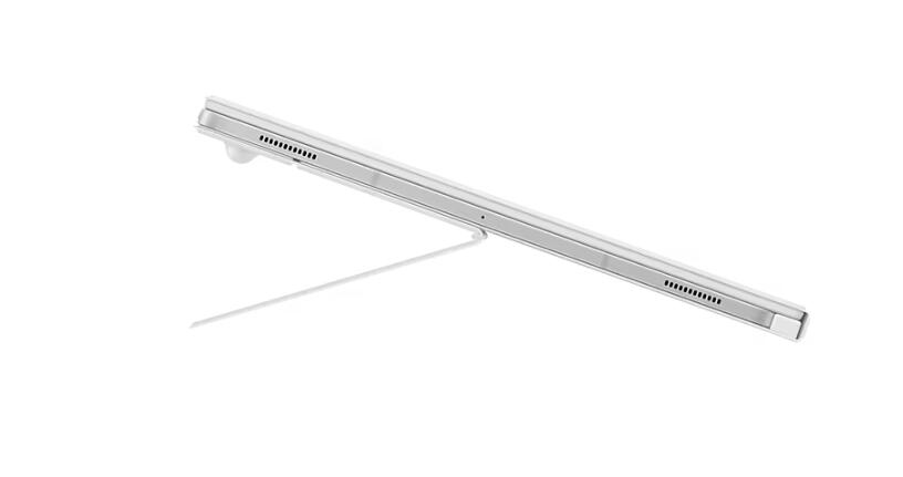 Klappe das Cover bis zu 150° zurück, um das Book Cover Keyboard bequem zu nutzen. Passe den Winkel auf der Rückseite einfach an, um deine Position zu finden, für eine entspannte Ansicht, egal ob du zu Hause auf der Couch oder in einem Café arbeitest.