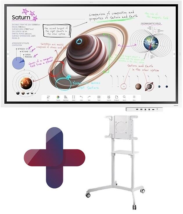 Samsung Flip Pro WM65B Flipchart 165 cm 65 Zoll + Flip Pro Tray CY-TF65BBC + Neomounts NS-M1250 Rollwagen rotierbar