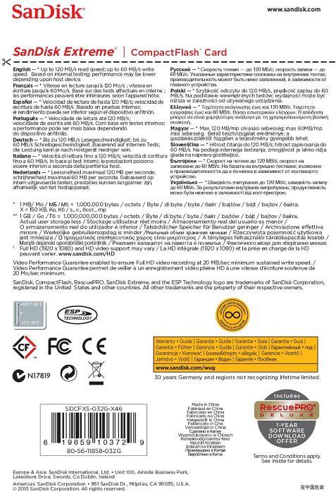 SanDisk Extreme CompactFlash Speicherkarte 32GB