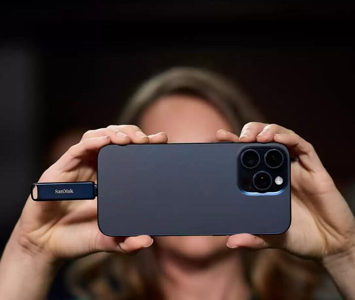 Mehr Kompatibilität ist gefragt. Das SanDisk Phone Drive verfügt über zwei Anschlüsse. So können Sie Dateien ganz einfach zwischen iPhone, iPad Pro, Mac und USB Type-C™-Geräten übertragen.