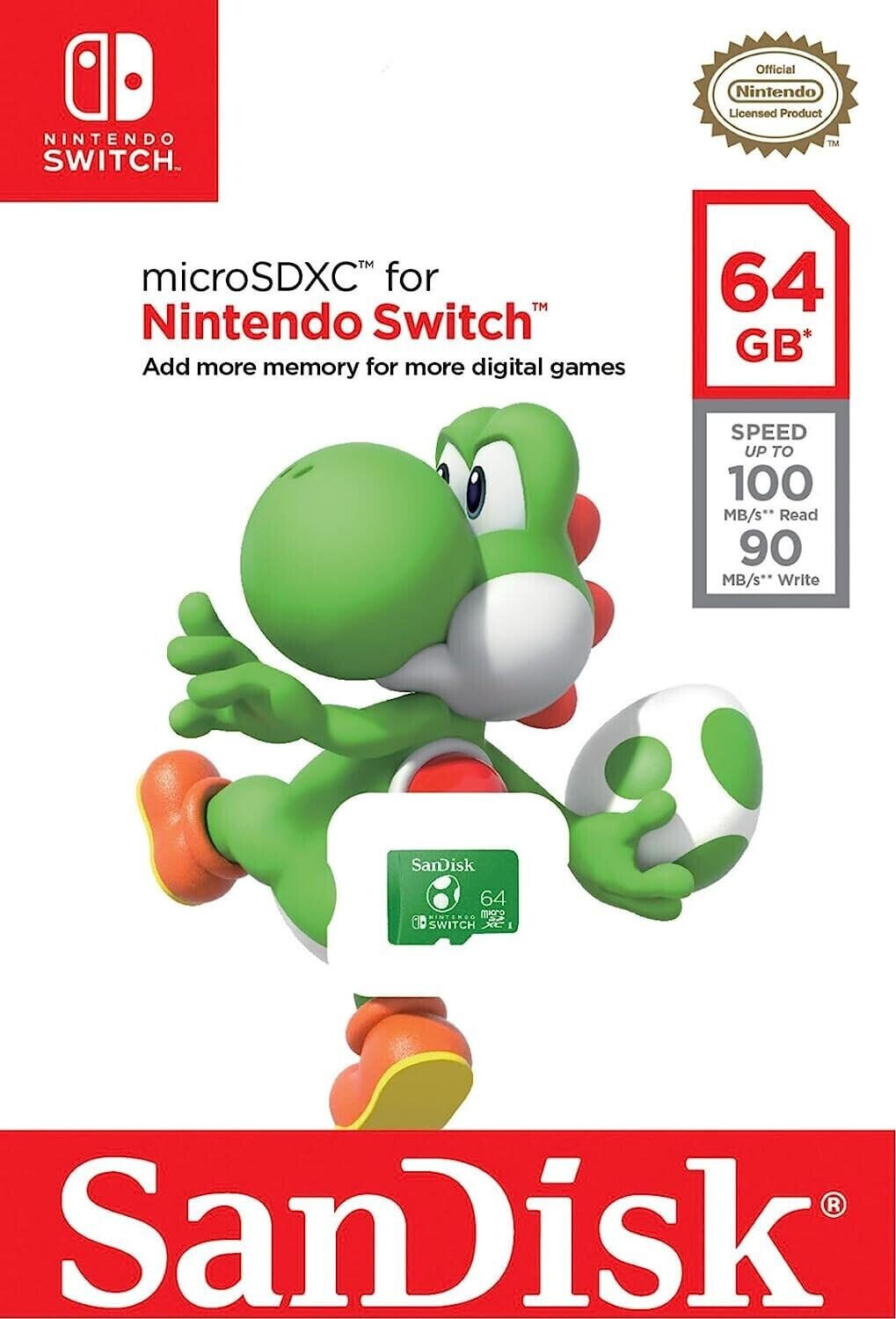 Mit der ultraschnellen, offiziell lizenzierten SanDisk microSDXC™-Karte lässt sich der Speicher der Nintendo Switch™ schnell um bis zu 1 TB erweitern. Weniger warten und dafür länger spielen – Lese- und Schreibgeschwindigkeiten von bis zu 100 MB/s bzw. 90 MB/s machen es möglich.