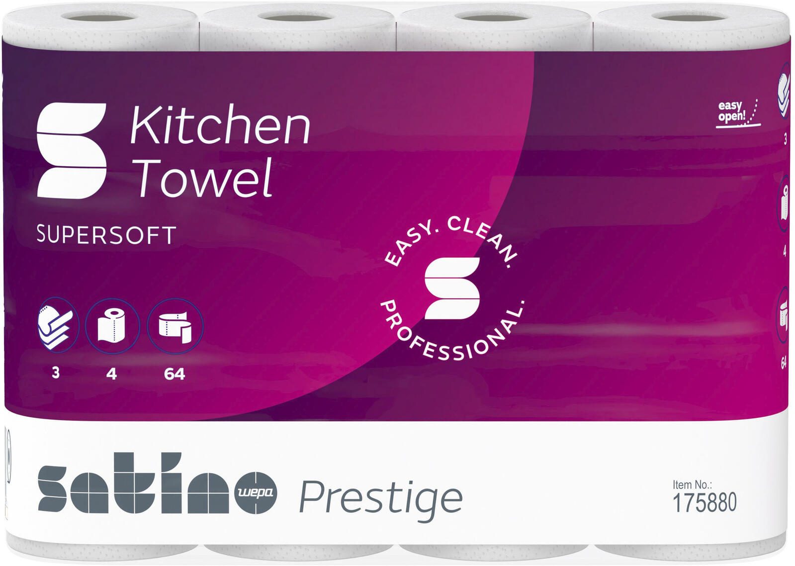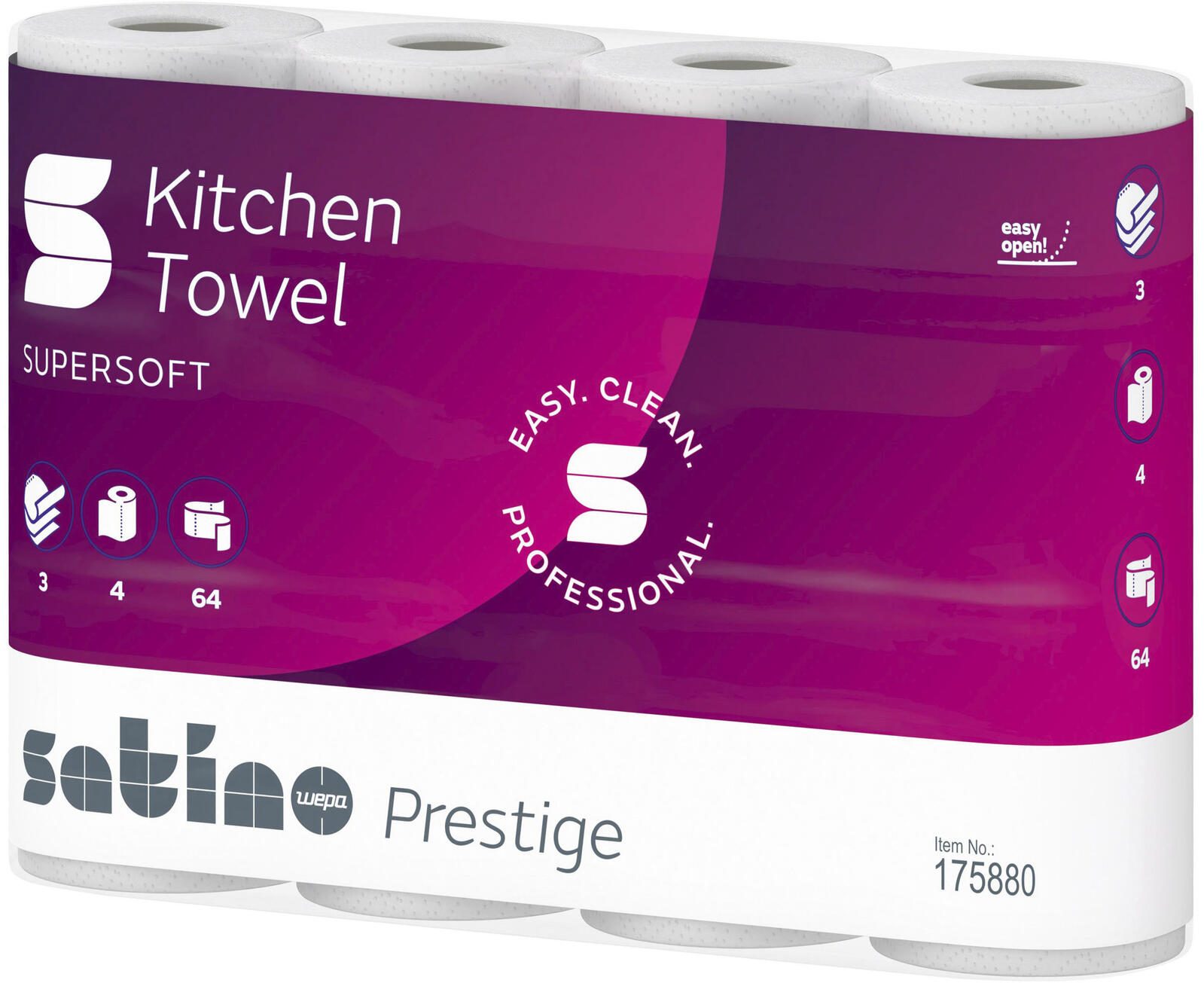Die Satino by wepa Küchenrollen prestige 3-lagig sind die perfekte Lösung für alle, die Wert auf Qualität und Funktionalität in der Küche legen. Diese Küchenrollen sind in einem klassischen Weiß gehalten und bestehen aus hochwertigem Zellstoff, der für seine hervorragende Saugfähigkeit und Strapazierfähigkeit bekannt ist. Mit drei Lagen bieten sie eine optimale Kombination aus Festigkeit und Weichheit, sodass sie selbst bei anspruchsvollsten Aufgaben nicht reißen oder durchweichen. Jede Rolle enthält 64 Blätter, die sich ideal für eine Vielzahl von Anwendungen eignen, sei es zum Abwischen von Verschmutzungen, zum Trocknen von Geschirr oder zum Schutz von Oberflächen. Die Verpackungseinheit umfasst vier Rollen, sodass du stets ausreichend Küchenrollen zur Hand hast, um deinen Alltag zu erleichtern. Die durchdachte Gestaltung der Satino Küchenrollen sorgt dafür, dass du immer die richtige Menge auf einmal abreißen kannst, ohne dass die Blätter unnötig abgerissen werden. Die Satino by wepa Küchenrollen prestige sind nicht nur funktional, sondern auch umweltfreundlich, da sie aus nachhaltigen Materialien hergestellt werden. Die Verwendung von Zellstoff sorgt dafür, dass du ein Produkt erhältst, das sowohl effizient als auch umweltbewusst ist. Diese Küchenrollen sind besonders für Familien und Haushalte geeignet, die häufig in der Küche arbeiten und Wert auf Sauberkeit und Hygiene legen. Mit Satino by wepa Küchenrollen prestige 3-lagig entscheidest du dich für ein Produkt, das dir im Alltag eine große Hilfe ist und gleichzeitig die Umwelt schont. Erlebe die Qualität und den Komfort dieser Küchenrollen und genieße ein sauberes und gepflegtes Zuhause.Technische Daten