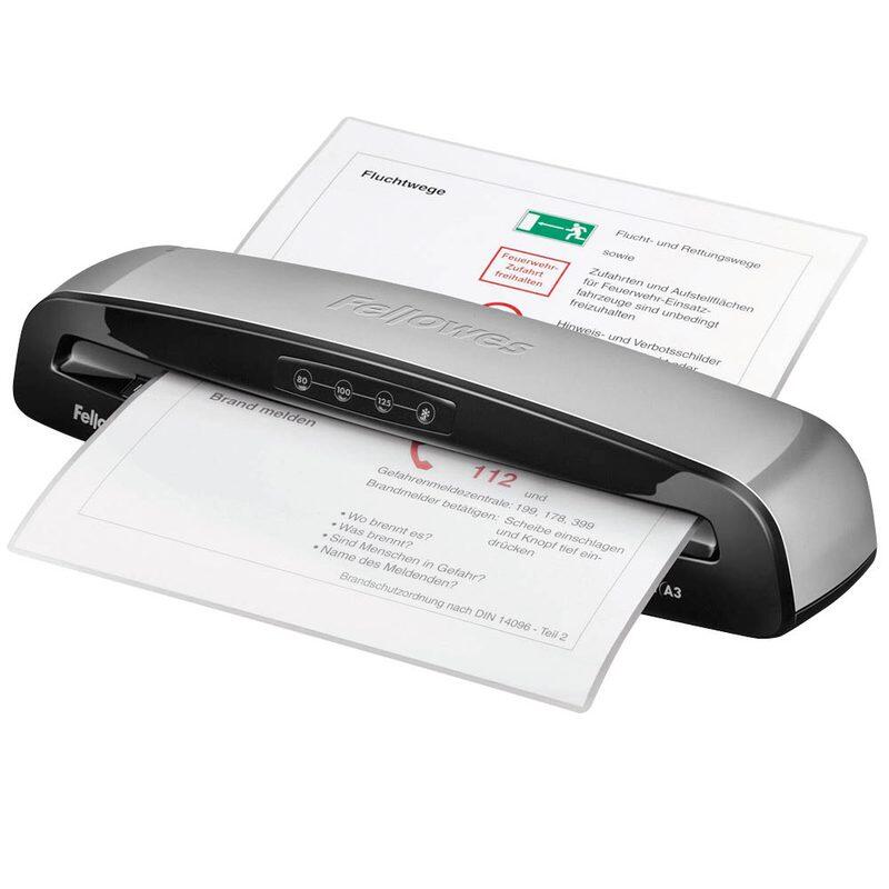 Das Fellowes Laminiergerät Saturn 3i bis DIN A3 ist die ideale Lösung für alle, die ihre Dokumente und Bilder professionell schützen und aufwerten möchten. Mit seiner eleganten anthrazitfarbenen Oberfläche fügt sich das Gerät harmonisch in jedes Büro oder Homeoffice ein und bietet gleichzeitig eine Vielzahl an Funktionen, die das Laminieren zum Kinderspiel machen.
