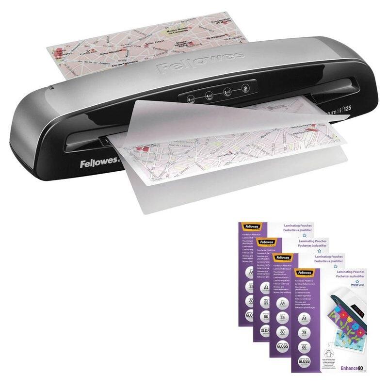 Das Fellowes Laminiergerät Saturn3i ist die ideale Lösung für alle, die Dokumente, Fotos oder Bastelarbeiten professionell laminieren möchten. Mit der Fähigkeit, Formate bis DIN A3 zu verarbeiten, bietet dieses Laminiergerät Flexibilität und Vielseitigkeit für verschiedene Anwendungen. Die Laminierfolien haben eine Stärke von 125 Mikron pro Seite, was für eine robuste und langlebige Versiegelung sorgt. In einem eleganten Anthrazit gehalten, fügt sich das Saturn3i nahtlos in jedes Büro- oder Arbeitsumfeld ein. Die ansprechende Farbgestaltung sorgt dafür, dass das Gerät nicht nur funktional, sondern auch ästhetisch ansprechend ist. Fellowes, als renommierter Hersteller von Büroprodukten, garantiert mit diesem Laminiergerät eine hohe Qualität und Zuverlässigkeit, die den Anforderungen des täglichen Gebrauchs standhält. Die Anwendung des Saturn3i ist denkbar einfach. In nur wenigen Minuten können Sie Ihre Dokumente laminiert und somit vor Abnutzung, Feuchtigkeit und Schmutz schützen. Dies ist besonders vorteilhaft für wichtige Unterlagen, die häufig verwendet werden, sowie für kreative Projekte, die eine ansprechende Präsentation erfordern. Das Paket umfasst 100 Laminierfolien, sodass Sie sofort mit dem Laminieren beginnen können, ohne zusätzliche Materialien erwerben zu müssen. Dies macht das Fellowes Laminiergerät Saturn3i zu einer praktischen und kosteneffizienten Wahl für sowohl den privaten als auch den geschäftlichen Gebrauch. Mit seiner Kombination aus Benutzerfreundlichkeit, ansprechendem Design und hochwertiger Verarbeitung ist das Fellowes Laminiergerät Saturn3i die perfekte Wahl für alle, die ihre Dokumente und Projekte professionell schützen und aufwerten möchten.Technische Daten