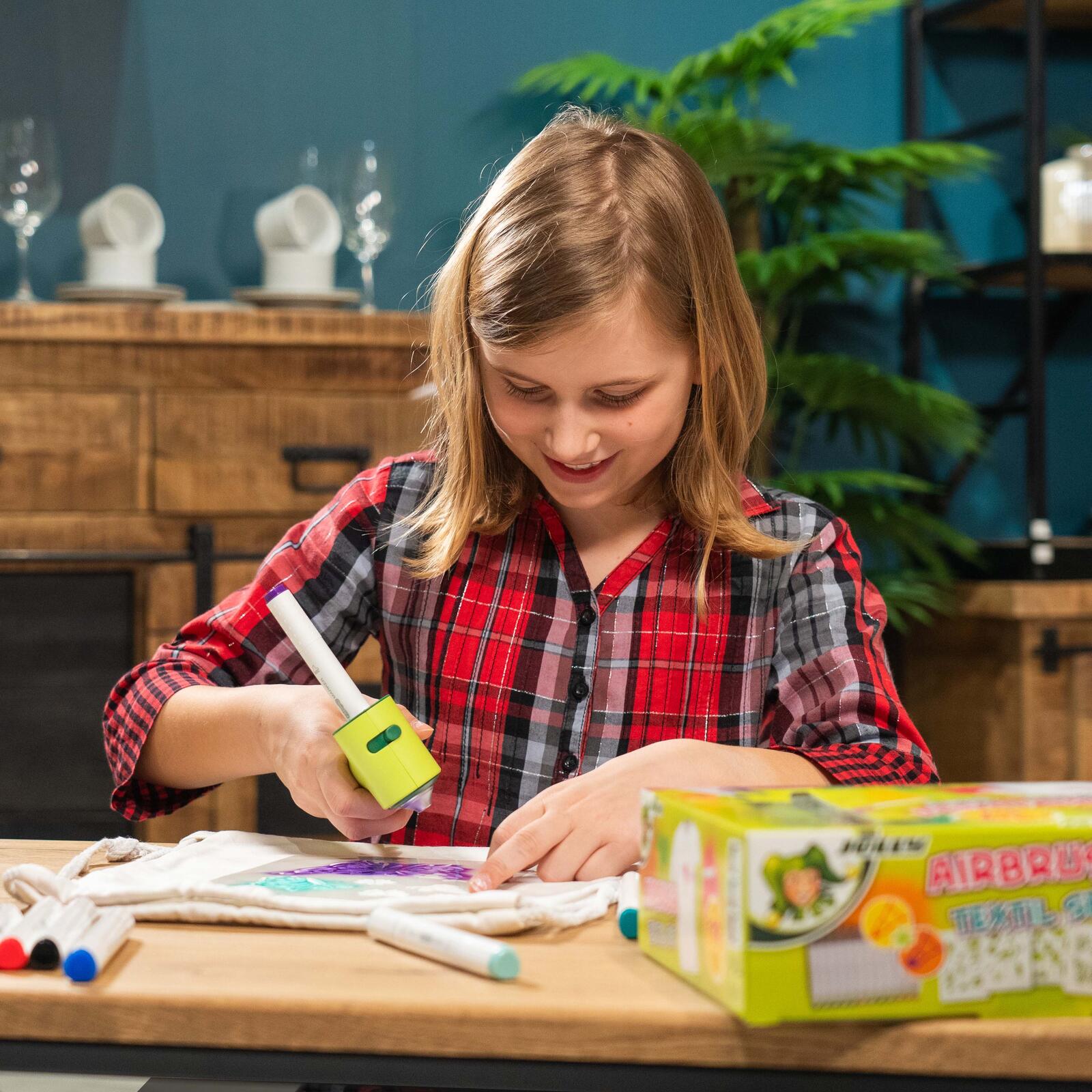 Das Set wird in einem praktischen Kartonetui geliefert, das eine übersichtliche Aufbewahrung und einfachen Transport gewährleistet. Es eignet sich gut für den Einsatz zu Hause oder unterwegs und unterstützt das spielerische Erlernen der Airbrush-Technik.
