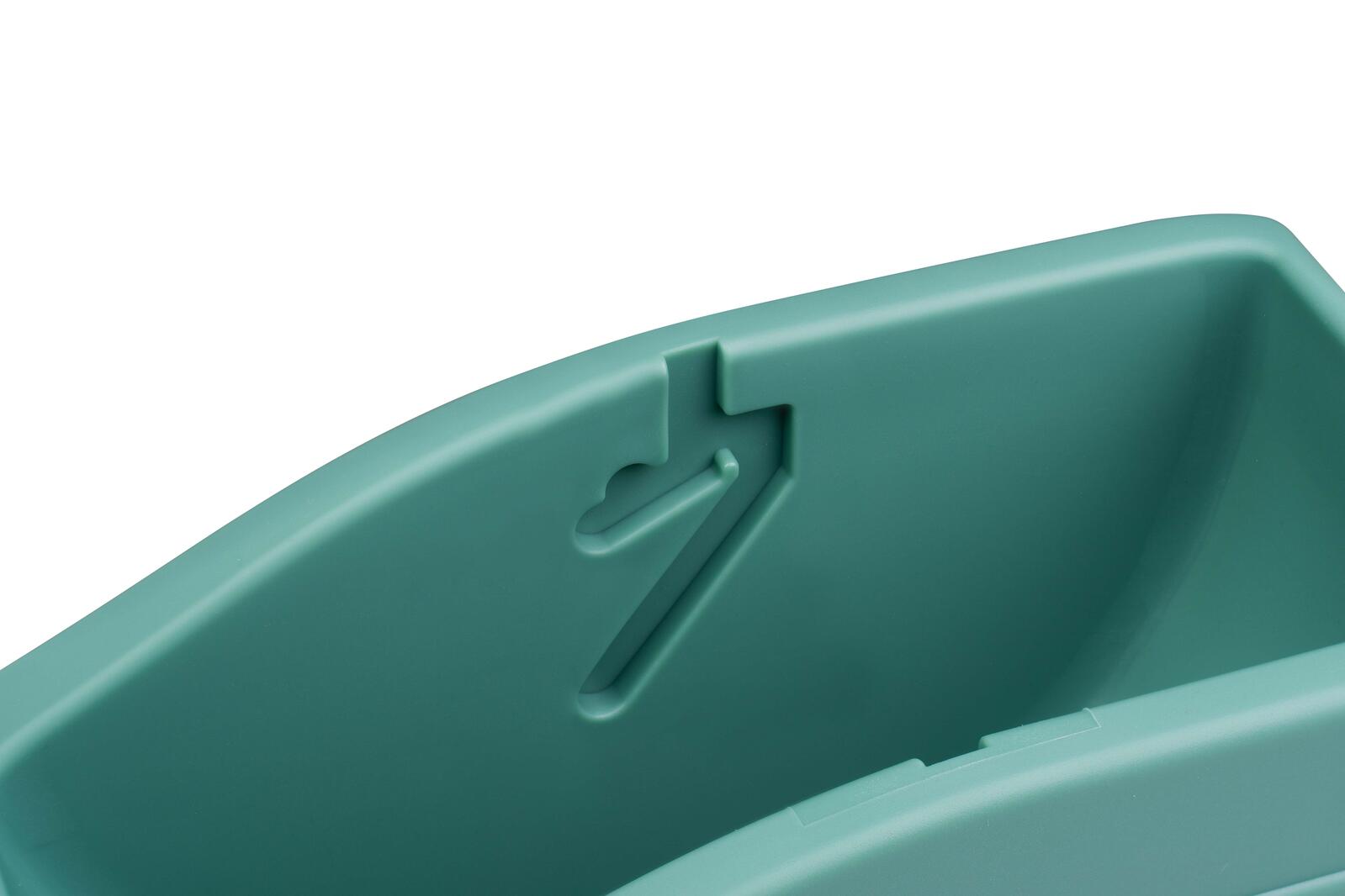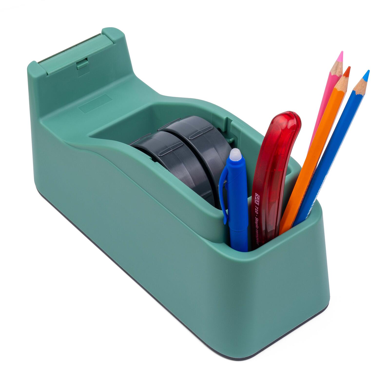 Der Abroller verfügt über einen Kerndurchmesser von 7,60 Zentimetern, was ihn kompatibel mit vielen handelsüblichen Klebefilmrollen macht. Das Gehäuse besteht aus robustem Kunststoff, der eine lange Lebensdauer garantiert und gleichzeitig leicht zu reinigen ist. Die Farbe salbeigrün verleiht dem Produkt eine dezente und moderne Optik.