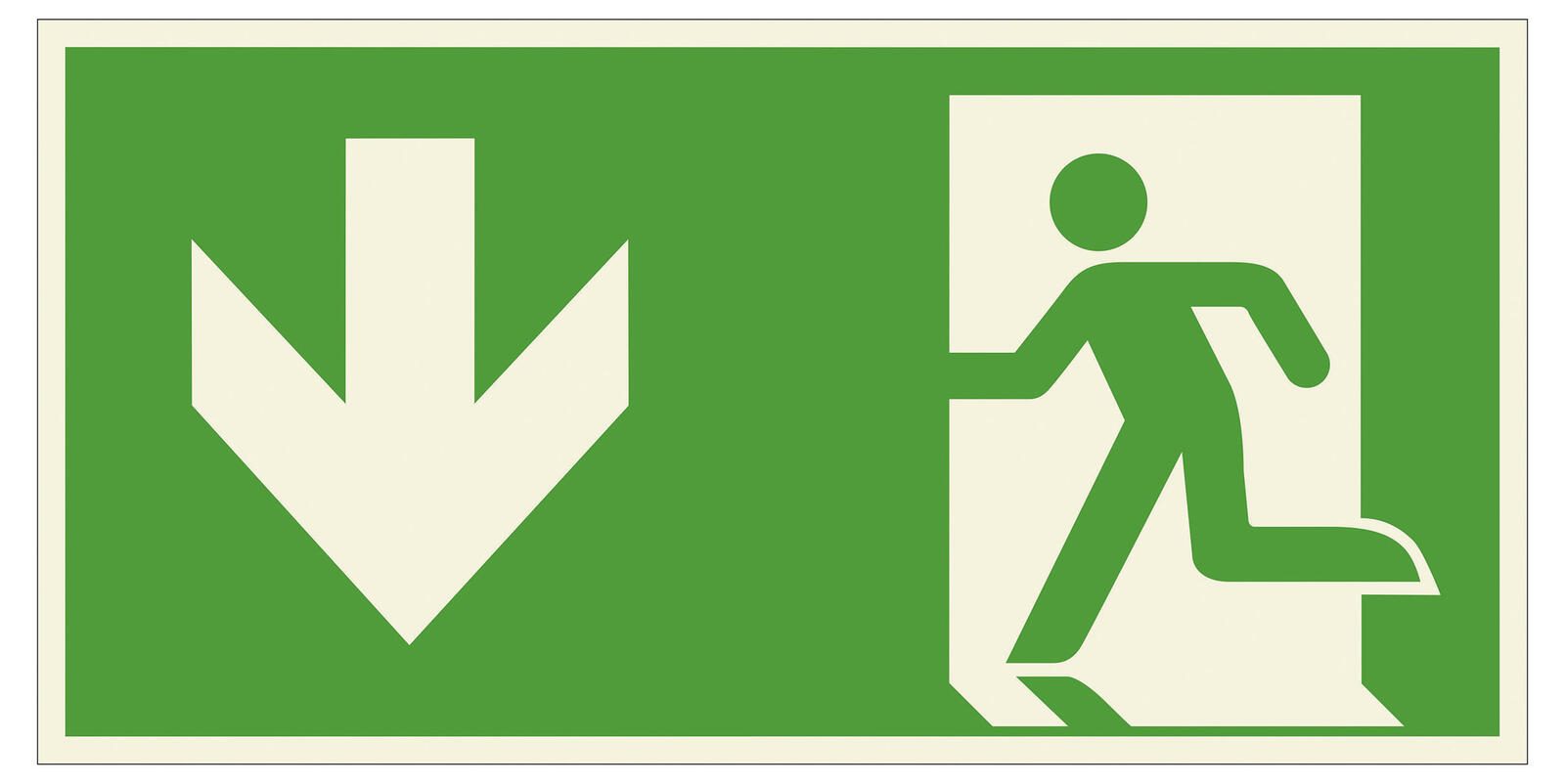 SafetyMarking® Rettungszeichen-Aufkleber Notausgang links abwärts 30 cm x 15 cm
