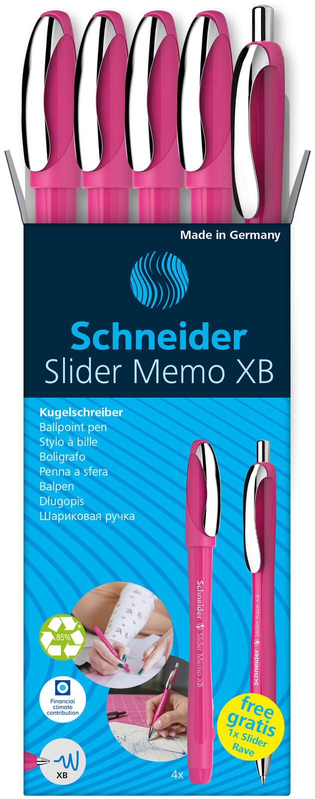 Schneider Slider Memo Kugelschreiber pink 0.7 mm Schreibfarbe: Blau, 4 St. + GRATIS 1 Schneider Slider Rave XB pink
