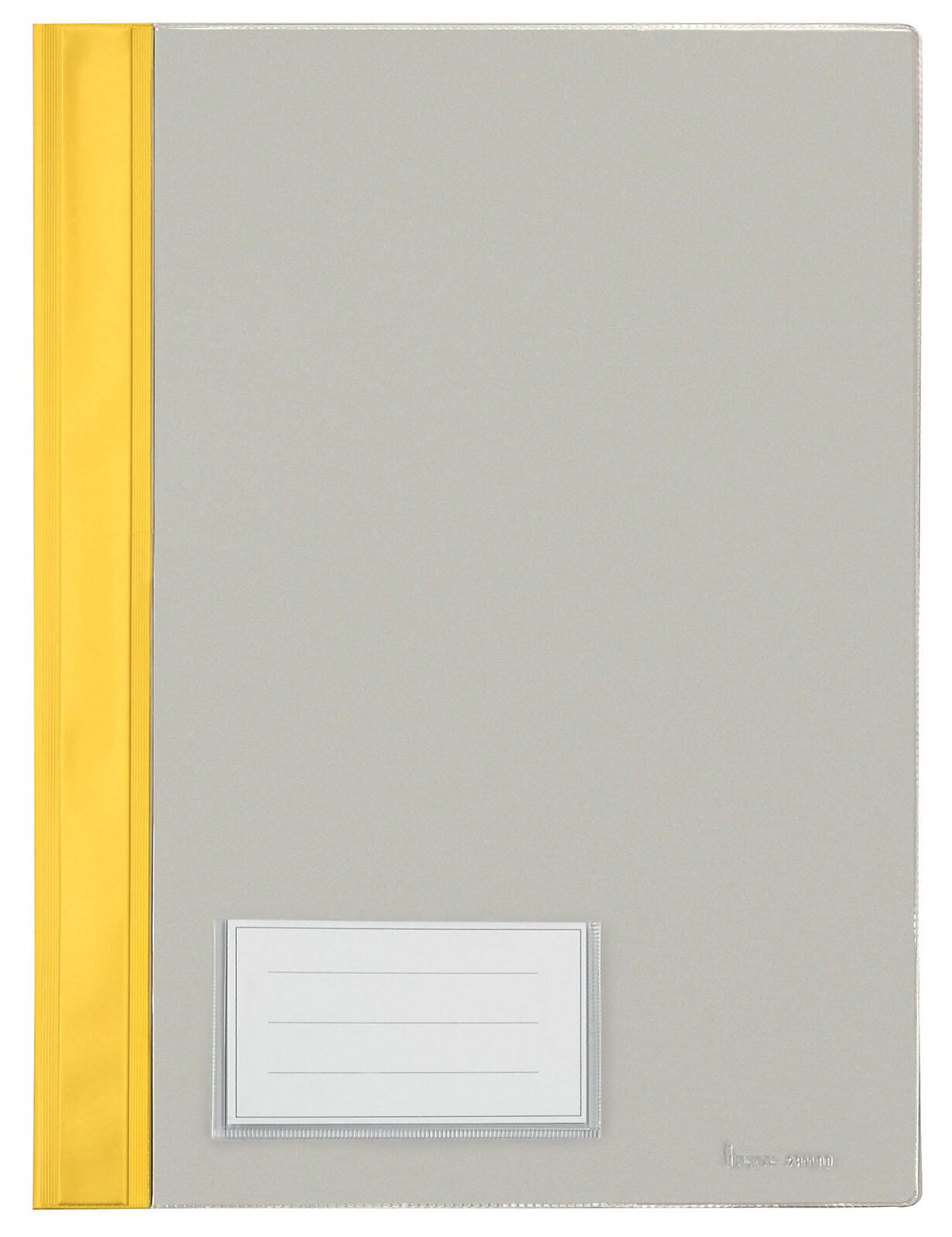 Die auffällige gelbe Farbe macht diesen Schnellhefter nicht nur optisch ansprechend, sondern erleichtert auch das schnelle Auffinden in deinem Büro oder Zuhause. Die graue Vorderseite des Schnellhefters bietet zudem eine neutrale und professionelle Optik.