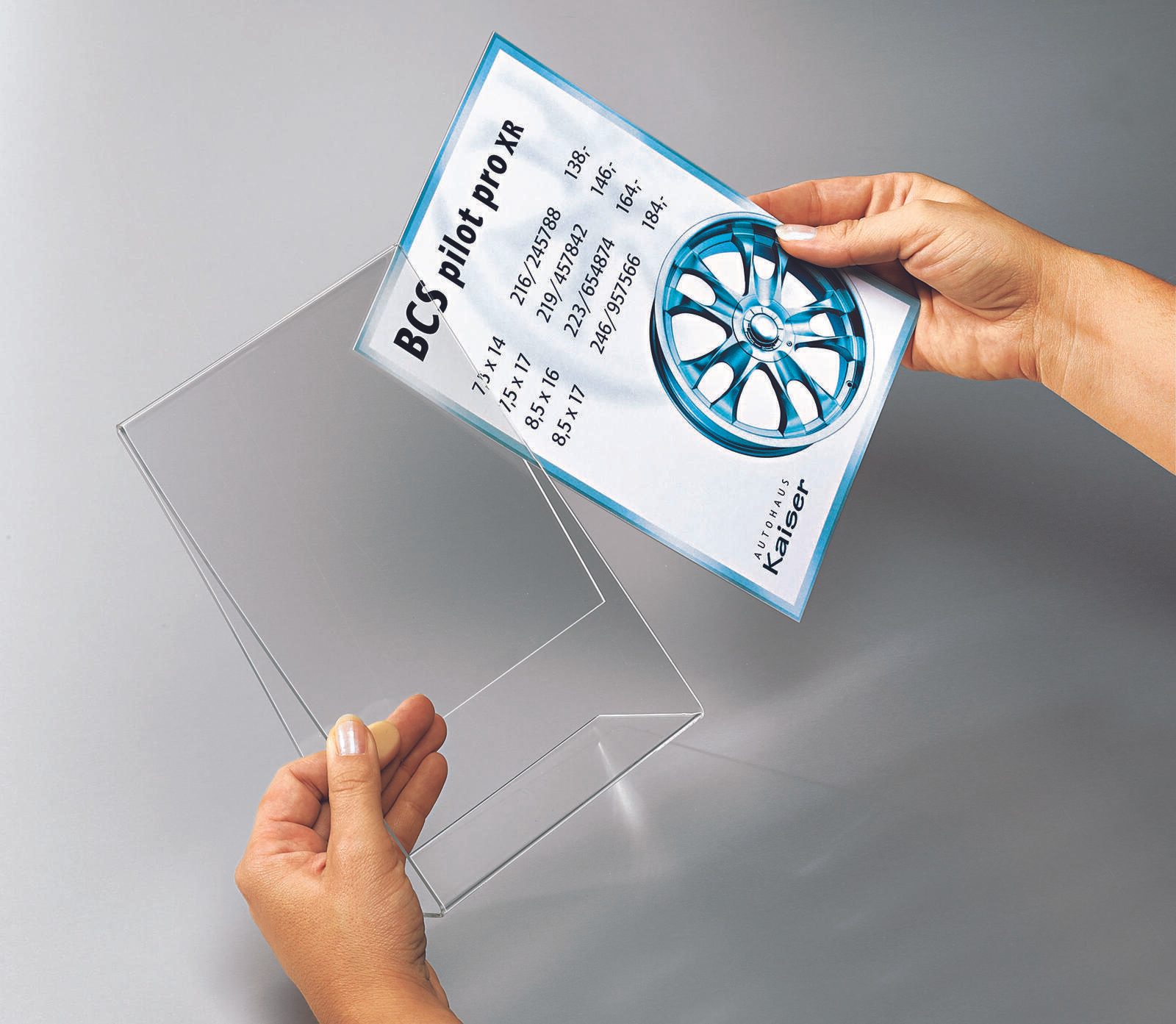 Dank des hochwertigen Acrylmaterials ist der Aufsteller nicht nur stabil, sondern auch transparent, sodass deine Inhalte perfekt zur Geltung kommen. Der glasklare Farbton verleiht dem Tischaufsteller ein modernes und professionelles Erscheinungsbild, das jede Umgebung aufwertet.