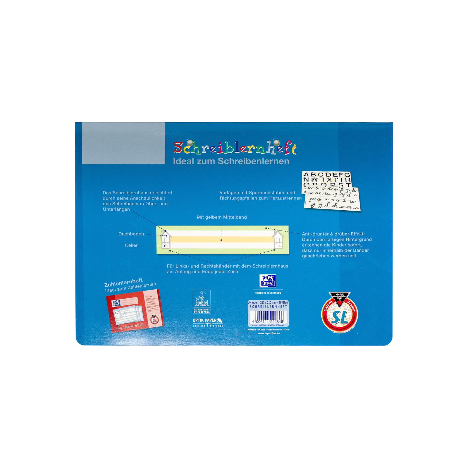 Das Schreiblernheft von OXFORD ist ideal, um das Schreiben zu erlernen. Mit umweltschonender Papierherstellung und 16 linierten Blättern ist es perfekt für Anfänger. Die grün/weiße Farbe macht das Heft ansprechend. Es hat keine Ränder und ist elementar chlorfrei gebleicht (ECF).