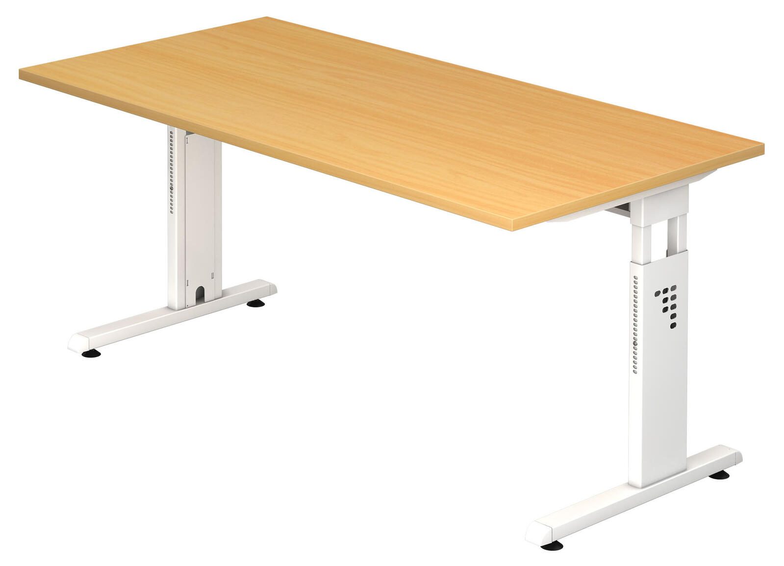 Der HAMMERBACHER höhenverstellbare Schreibtisch VOS16/6/W in ansprechender Buche-Optik vereint Funktionalität und modernes Design. Mit einer großzügigen Tischplatte aus Spanplatte und einem stabilen Stahlgestell bietet dieser Schreibtisch eine ideale Grundlage für produktives Arbeiten. Die Maße von 160 cm in der Breite, 80 cm in der Tiefe und 65 cm in der Höhe machen ihn zu einem perfekten Möbelstück für jedes Büro oder Homeoffice.