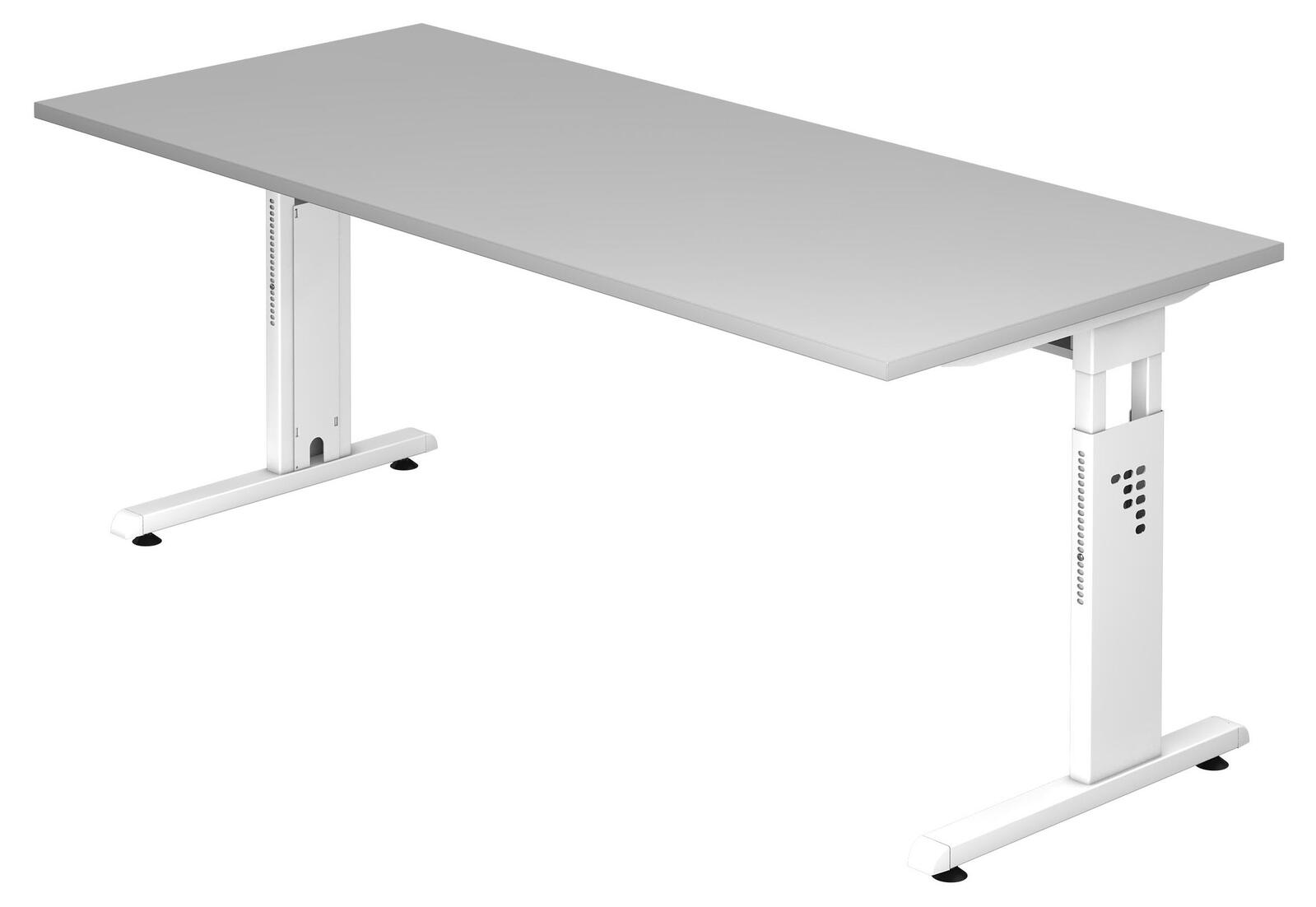 Der HAMMERBACHER höhenverstellbare Schreibtisch VOS19/5/W in lichtgrau vereint Funktionalität und modernes Design. Die Tischplatte besteht aus robuster Spanplatte, die für ihre Langlebigkeit und Stabilität bekannt ist. Das C-Fuß-Gestell aus hochwertigem Stahl sorgt nicht nur für eine sichere Standfestigkeit, sondern verleiht dem Schreibtisch auch eine elegante Note. Die Kombination aus lichtgrauer Tischplatte und weißem Gestell fügt sich harmonisch in jede Büroumgebung ein und schafft eine angenehme Arbeitsatmosphäre. Mit einer großzügigen Fläche von 180 cm in der Breite und 80 cm in der Tiefe bietet dieser Schreibtisch ausreichend Platz für Ihre Arbeitsmaterialien, Computer und persönliche Gegenstände. Die Höhe von 65 cm ermöglicht eine ergonomische Nutzung, die Ihre Gesundheit unterstützt und Rückenbeschwerden vorbeugt. Der höhenverstellbare Mechanismus erlaubt es Ihnen, die optimale Arbeitshöhe individuell anzupassen, sodass sowohl im Sitzen als auch im Stehen komfortabel gearbeitet werden kann. Die schlichte und moderne Farbgebung in lichtgrau sorgt dafür, dass der Schreibtisch leicht in verschiedene Einrichtungsstile integriert werden kann. Ob im Homeoffice oder im professionellen Büro, der HAMMERBACHER Schreibtisch ist die ideale Wahl für alle, die Wert auf Qualität und Design legen. Ein weiterer Vorteil ist die einfache Montage, die es Ihnen ermöglicht, den Schreibtisch schnell und unkompliziert aufzubauen. Der Schreibtisch VOS19/5/W ist nicht nur funktional, sondern auch ein stilvolles Möbelstück, das Ihre Arbeitsumgebung aufwertet. Setzen Sie auf den HAMMERBACHER höhenverstellbaren Schreibtisch VOS19/5/W und genießen Sie ein angenehmes und produktives Arbeitsumfeld.Technische Daten