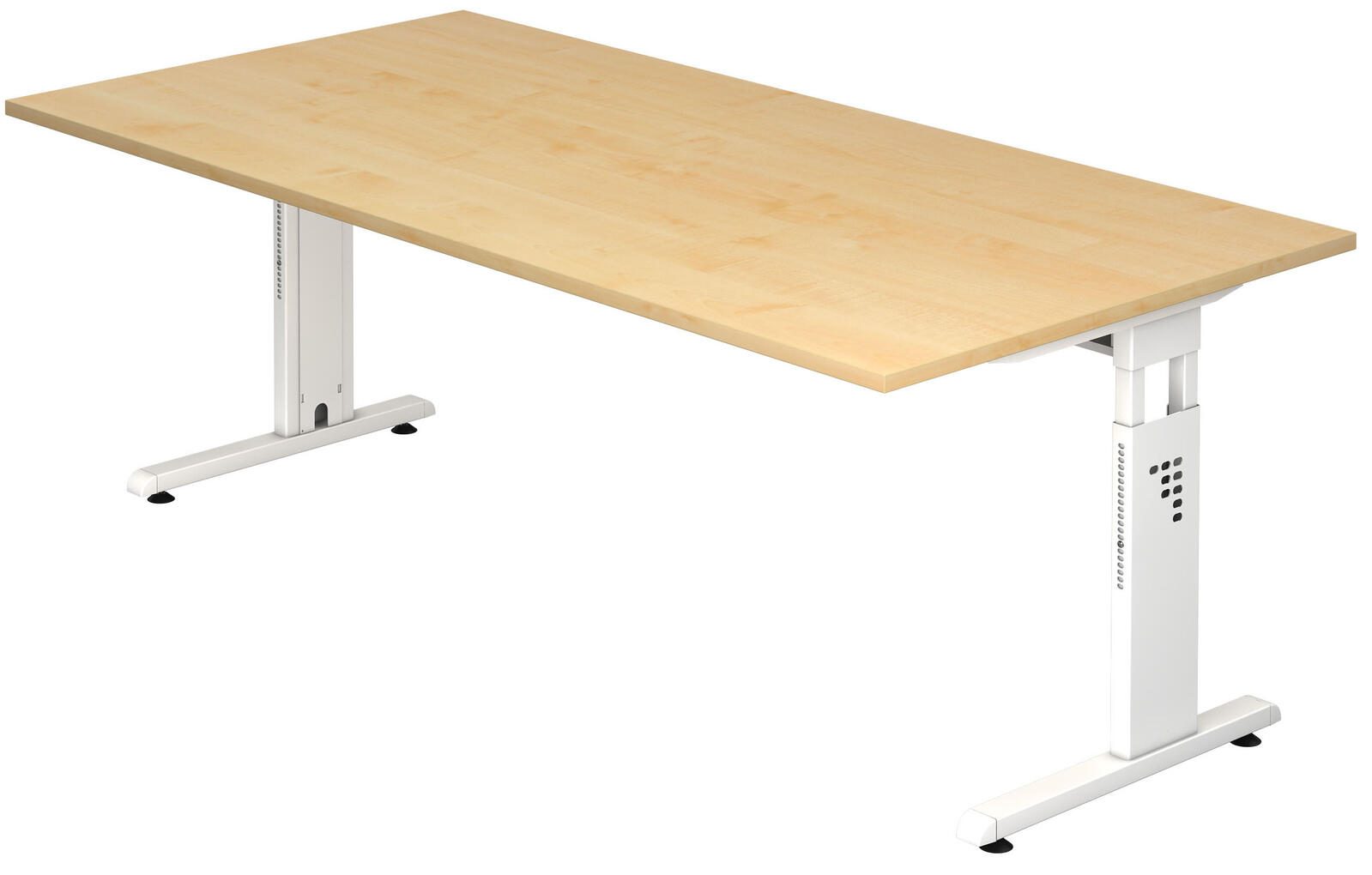 Der HAMMERBACHER höhenverstellbare Schreibtisch VOS2E/3/W in elegantem Ahorn-Design bietet Ihnen eine perfekte Kombination aus Funktionalität und modernem Stil. Die Tischplatte besteht aus robuster Spanplatte, die nicht nur langlebig ist, sondern auch eine ansprechende Oberfläche bietet. Mit einem großzügigen Maß von 200 cm in der Breite, 100 cm in der Tiefe und einer Höhe von 65 cm passt dieser Schreibtisch ideal in jedes Büro oder Home-Office.