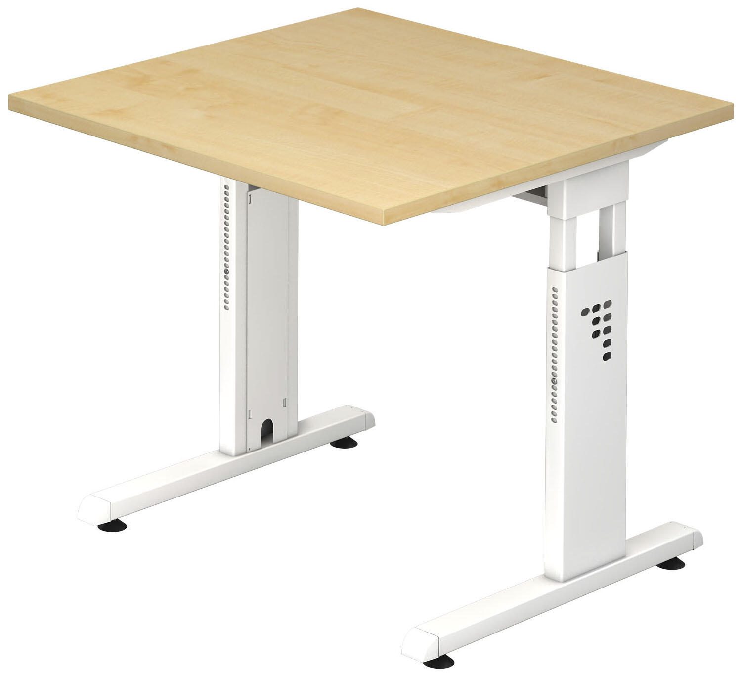 Der HAMMERBACHER höhenverstellbare Schreibtisch VOS08/3/W in elegantem Ahorn bietet Ihnen die Möglichkeit, Ihre Arbeitsumgebung individuell zu gestalten und gleichzeitig ergonomische Vorteile zu genießen. Die Tischplatte besteht aus hochwertiger Spanplatte, die nicht nur stabil ist, sondern auch eine ansprechende Optik bietet. Das weiße Stahlgestell sorgt für eine robuste Unterstützung und verleiht dem Schreibtisch eine moderne Note. Mit den Maßen von 80 cm in der Breite und Tiefe sowie einer Höhe von 65 cm passt dieser Schreibtisch perfekt in verschiedene Raumkonzepte, sei es im Homeoffice, im Büro oder in einem kreativen Arbeitsbereich. Das C-Fuß-Gestell ermöglicht eine flexible Höhenverstellung, sodass Sie sowohl im Sitzen als auch im Stehen arbeiten können. Diese Funktion fördert nicht nur eine gesunde Körperhaltung, sondern steigert auch Ihre Konzentration und Produktivität während der Arbeit. Der Schreibtisch ist Teil der Serienbezeichnung OS 08 von HAMMERBACHER und überzeugt durch seine schlichte Eleganz und Funktionalität. Durch die Verwendung von strapazierfähigen Materialien ist der Schreibtisch nicht nur langlebig, sondern auch pflegeleicht, was ihn zu einer idealen Wahl für den täglichen Einsatz macht. Es gibt keine zusätzlichen Fächer oder Schübe, was Ihnen eine klare und aufgeräumte Arbeitsfläche bietet, die Ihnen hilft, sich auf das Wesentliche zu konzentrieren. Der harmonische Farbton des Ahorns in Kombination mit dem weißen Gestell sorgt für eine freundliche und einladende Atmosphäre, die Ihre Kreativität anregen kann. Der HAMMERBACHER höhenverstellbare Schreibtisch VOS08/3/W ist somit nicht nur ein funktionales Möbelstück, sondern auch ein stilvolles Element Ihrer Einrichtung, das Ihren Arbeitsalltag bereichert.Technische Daten