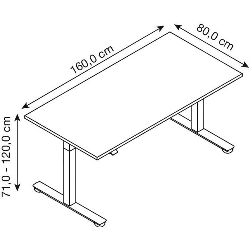 Die Maße von 160 cm in der Breite, 80 cm in der Tiefe und 71 cm in der Höhe bieten ausreichend Platz für Ihren Laptop, Unterlagen und weitere Büromaterialien. Dank der elektrischen Höhenverstellung können Sie die Tischhöhe individuell anpassen und zwischen sitzender und stehender Position wechseln. Dies fördert eine gesunde Körperhaltung und kann dazu beitragen, Rückenbeschwerden vorzubeugen. Die einfache Bedienung erfolgt über einen praktischen Tastschalter, der sowohl links als auch rechts montiert werden kann, sodass Sie den Schreibtisch nach Ihren Bedürfnissen anpassen können.