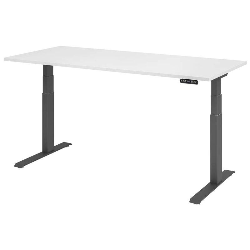 Der HAMMERBACHER Schreibtisch VXDKB19/W/G in elegantem Weiß vereint Funktionalität und modernes Design. Mit einer großzügigen Tischplatte aus hochwertiger Spanplatte bietet dieser Schreibtisch ausreichend Platz für Ihre Arbeitsmaterialien und sorgt für eine angenehme Arbeitsatmosphäre. Die Verwendung von robustem Stahl für das Gestell gewährleistet nicht nur Stabilität, sondern auch Langlebigkeit, sodass Sie lange Freude an diesem Möbelstück haben werden.
