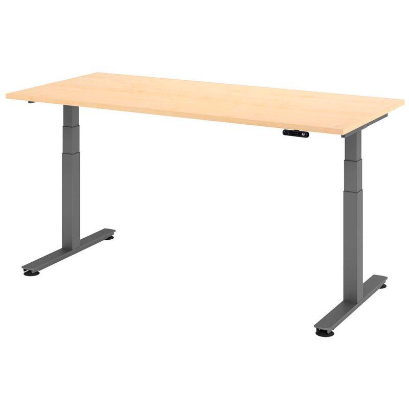 Der HAMMERBACHER Schreibtisch VXDSM19/3/G in elegantem Ahorn ist die perfekte Lösung für Ihr Homeoffice oder Ihr Büro. Mit einer großzügigen Tischplatte aus Spanplatte bietet dieser Schreibtisch ausreichend Platz für Ihre Arbeitsmaterialien, Notizen und technische Geräte. Die Maße von 180 cm in der Breite, 80 cm in der Tiefe und 63 cm in der Höhe ermöglichen eine komfortable und ergonomische Arbeitsposition, die Ihre Produktivität steigert. Das robuste Gestell aus hochwertigem Stahl sorgt für Stabilität und Langlebigkeit, sodass Sie sich auf eine zuverlässige Unterstützung verlassen können, egal wie intensiv Ihre Arbeit ist. Die ansprechende Ahornfarbe verleiht dem Schreibtisch eine warme und einladende Ausstrahlung, die sich harmonisch in jede Büroeinrichtung integriert. Ein besonderes Merkmal dieses Schreibtisches ist die flexible Montageoption des Memoryschalters, der sowohl links als auch rechts montierbar ist und sich auch nach hinten verschieben lässt. Dies ermöglicht Ihnen eine individuelle Anpassung an Ihre persönlichen Bedürfnisse und den verfügbaren Raum, wodurch der Schreibtisch noch funktionaler wird. Die Kombination aus modernem Design und praktischen Funktionen macht den HAMMERBACHER Schreibtisch VXDSM19/3/G zu einer idealen Wahl für alle, die Wert auf Qualität und Stil legen. Er unterstützt nicht nur eine effiziente Arbeitsweise, sondern trägt auch zur Gestaltung eines angenehmen Arbeitsumfelds bei. Mit diesem Schreibtisch investieren Sie in ein Möbelstück, das sowohl ästhetisch als auch funktional überzeugt.Technische Daten
