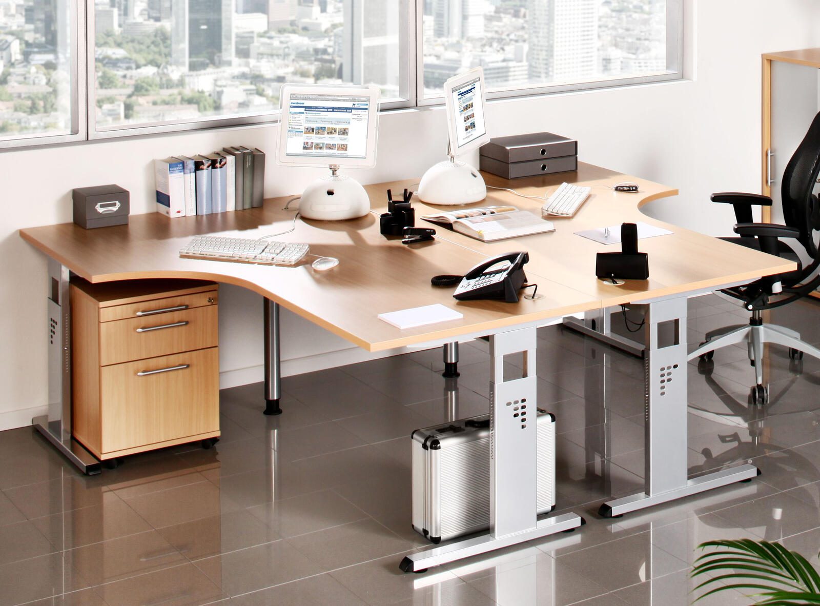 HAMMERBACHER VOS82/6/S höhenverstellbarer Schreibtisch 65 - 85 cm buche / silber