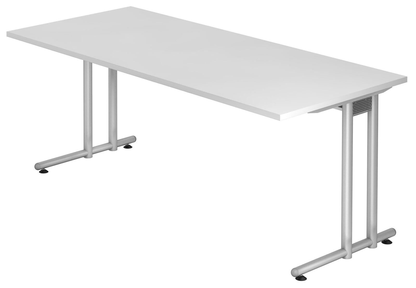 Der HAMMERBACHER Schreibtisch VNS19/W/S in elegantem Weiß vereint Funktionalität und modernes Design. Mit einer großzügigen Tischplatte aus stabiler Spanplatte und einem robusten Stahlgestell in ansprechendem Silber bietet dieser Schreibtisch nicht nur eine ansprechende Optik, sondern auch eine hohe Stabilität und Langlebigkeit. Die Abmessungen von 180 cm in der Breite, 80 cm in der Tiefe und 72 cm in der Höhe schaffen ausreichend Platz für Ihre Arbeitsmaterialien und persönlichen Gegenstände, sodass Sie in einer komfortablen Umgebung produktiv arbeiten können. Das C-Fuß-Gestell sorgt für eine optimale Beinfreiheit und ermöglicht eine flexible Anordnung in Ihrem Büro oder Arbeitszimmer. Durch die schlichte weiße Farbgebung fügt sich der Schreibtisch harmonisch in verschiedene Einrichtungsstile ein und sorgt für eine helle, einladende Atmosphäre. Ob für das Homeoffice, das Studium oder als Arbeitsplatz in einem kreativen Umfeld, der HAMMERBACHER Schreibtisch ist die ideale Wahl für alle, die Wert auf Qualität und Stil legen. Der Schreibtisch kommt ohne zusätzliche Fächer oder Schübe, was Ihnen die Möglichkeit gibt, Ihre persönliche Ordnung selbst zu gestalten. Ob Sie einen minimalistischen Look bevorzugen oder kreative Ablagen integrieren möchten, die Entscheidung liegt ganz bei Ihnen. Dieser Schreibtisch ist nicht nur ein Möbelstück, sondern ein Statement für modernes Arbeiten und ein ansprechendes Ambiente. Die Kombination aus hochwertigem Material und durchdachtem Design macht den HAMMERBACHER Schreibtisch VNS19/W/S zu einer ausgezeichneten Wahl für jeden, der einen stilvollen und funktionalen Arbeitsplatz sucht.Technische Daten