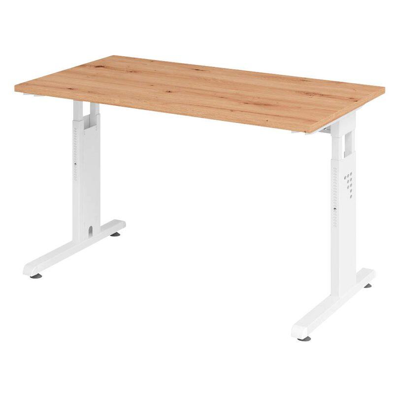 Der HAMMERBACHER Schreibtisch VOS612/R/W in Asteiche ist die perfekte Wahl für Ihr Home Office oder Ihr Arbeitszimmer. Mit einer Tischplatte aus robuster Spanplatte und einem stabilen Stahlgestell überzeugt dieser Schreibtisch nicht nur durch seine Langlebigkeit, sondern auch durch sein ansprechendes Design. Die elegante Farbgebung in Asteiche verleiht Ihrem Raum eine warme und einladende Atmosphäre, während das weiße C-Fuß-Gestell einen modernen Akzent setzt. Mit den Maßen von 120 cm in der Breite, 67,2 cm in der Tiefe und 65 cm in der Höhe bietet dieser Schreibtisch ausreichend Platz für Ihren Laptop, Bücher und andere Arbeitsmaterialien. Die großzügige Tischplatte ermöglicht es Ihnen, sich frei zu entfalten und Ihre Kreativität auszuleben. Trotz seines kompakten Designs ist der Schreibtisch so konzipiert, dass er in verschiedene Raumgrößen passt und sich harmonisch in Ihre Einrichtung einfügt. Der HAMMERBACHER Schreibtisch VOS612/R/W ist nicht nur funktional, sondern auch stilvoll. Er kommt ohne Schubladen oder Fächer aus, was Ihnen eine klare und aufgeräumte Arbeitsfläche bietet. Dies fördert die Konzentration und Produktivität, da Sie sich ganz auf Ihre Aufgaben konzentrieren können, ohne von unnötigem Chaos abgelenkt zu werden. Die hochwertige Verarbeitung und das durchdachte Design machen diesen Schreibtisch zu einer idealen Wahl für alle, die Wert auf Qualität und Ästhetik legen. Der HAMMERBACHER Schreibtisch VOS612/R/W ist nicht nur ein Möbelstück, sondern ein Statement für Ihren individuellen Stil und Ihre Ansprüche an ein modernes Arbeitsumfeld.Technische Daten