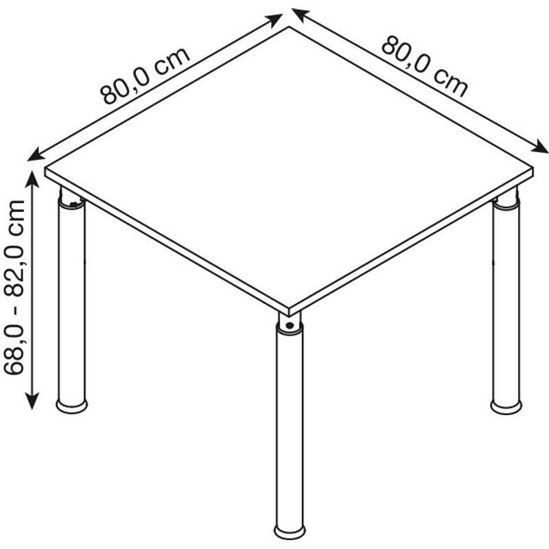 Der HAMMERBACHER höhenverstellbare Schreibtisch VYS08/N/S in Nussbaum ist die perfekte Lösung für alle, die Wert auf Ergonomie und Stil legen. Mit seiner eleganten Oberfläche aus Spanplatte in einem warmen Nussbaumton schafft dieser Schreibtisch eine einladende Arbeitsatmosphäre. Das robuste Stahlgestell in Silber sorgt nicht nur für Stabilität, sondern verleiht dem Tisch auch einen modernen Look. Die Maße des Schreibtisches betragen 80 cm in der Breite, 80 cm in der Tiefe und 68 cm in der Höhe, was ihn ideal für kleinere Büros oder Home-Office-Bereiche macht. Dank der höhenverstellbaren Funktion können Sie die Tischhöhe individuell anpassen, um eine optimale Sitz- oder Stehposition zu finden. Dies fördert nicht nur Ihre Gesundheit, sondern steigert auch die Produktivität, indem Sie Ihre Arbeitsweise flexibel gestalten können. Das 4-Fuß-Gestell bietet eine solide Basis, die auch bei intensiver Nutzung Stabilität gewährleistet. Der Schreibtisch hat keine Fächer oder Schübe, was Ihnen eine großzügige und aufgeräumte Arbeitsfläche bietet, die sich leicht an Ihre Bedürfnisse anpassen lässt. Die Kombination aus hochwertigem Material und durchdachtem Design macht den HAMMERBACHER Schreibtisch zu einem unverzichtbaren Möbelstück für jeden Arbeitsplatz. Er bietet nicht nur Funktionalität, sondern auch eine ansprechende Ästhetik, die in jedes moderne Büro integriert werden kann. Genießen Sie die Vorzüge eines höhenverstellbaren Schreibtisches, der Ihnen hilft, Ihre Arbeit effizienter und gesünder zu gestalten.Technische Daten