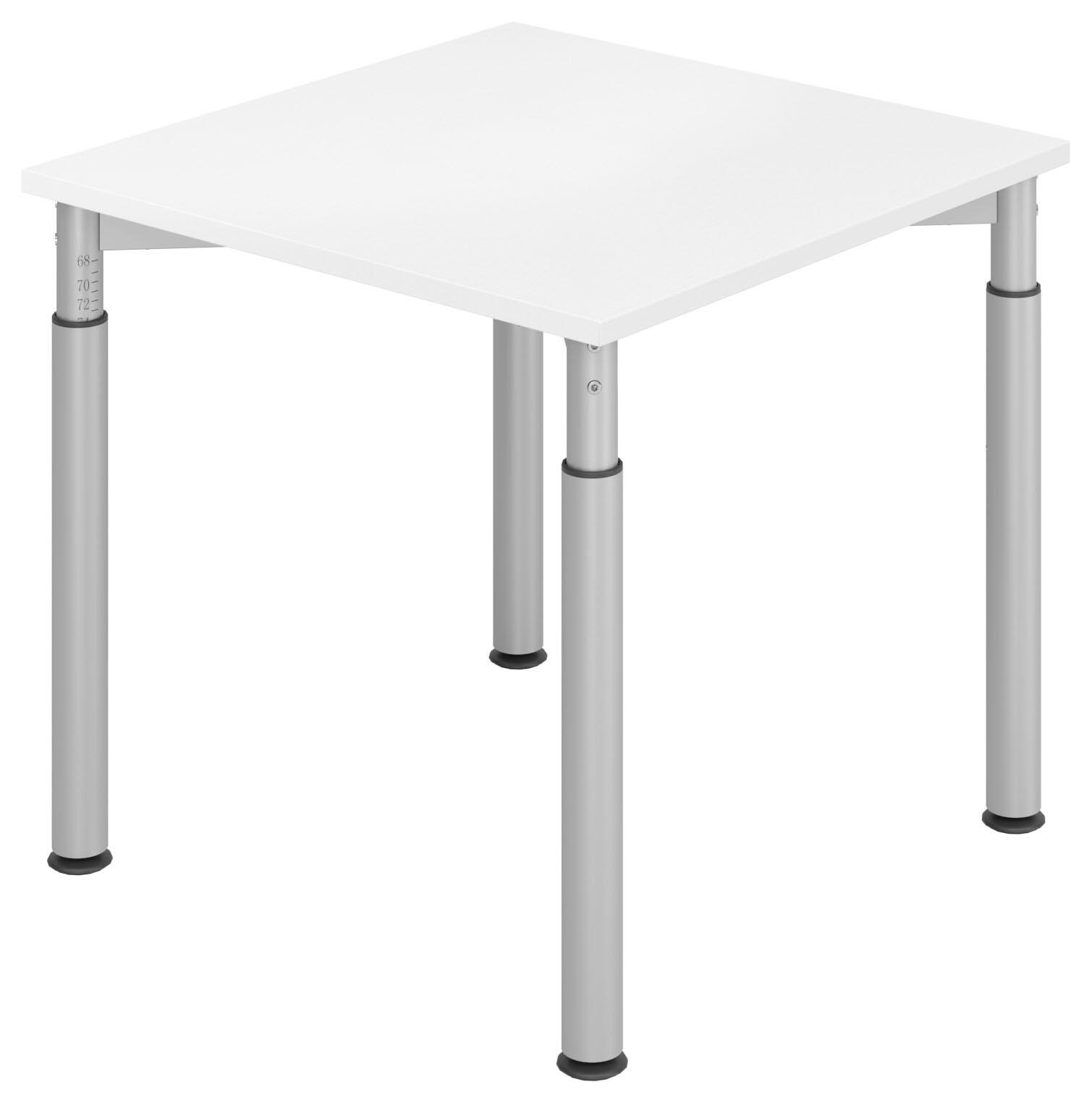 Der HAMMERBACHER höhenverstellbare Schreibtisch VYS08/W/S in elegantem Weiß ist die perfekte Lösung für modernes Arbeiten und kreatives Gestalten. Mit einer stabilen Tischplatte aus Spanplatte und einem robusten Stahlgestell in Silber vereint dieser Schreibtisch Funktionalität und ansprechendes Design. Die Maße von 80 cm x 80 cm x 68 cm bieten ausreichend Platz für Ihren Laptop, Notizen und weitere Arbeitsmaterialien, während die 4-Fuß-Gestell-Ausführung für eine hohe Stabilität sorgt. Ein herausragendes Merkmal dieses Schreibtisches ist die Höhenverstellbarkeit, die es Ihnen ermöglicht, die optimale Arbeitshöhe für Ihre individuellen Bedürfnisse einzustellen. Ob im Sitzen oder Stehen, dieser Schreibtisch fördert eine gesunde Körperhaltung und kann dazu beitragen, Rückenbeschwerden vorzubeugen. Die Möglichkeit, die Höhe flexibel anzupassen, unterstützt zudem einen dynamischen Arbeitsstil, der den Wechsel zwischen verschiedenen Tätigkeiten erleichtert. Die schlichte, weiße Farbgebung des Tisches fügt sich harmonisch in jedes Raumkonzept ein und sorgt für eine helle, einladende Atmosphäre. Das zeitlose Design macht den Schreibtisch ideal für Home-Offices, Büroräume oder kreative Arbeitsumgebungen. Da der Schreibtisch keine zusätzlichen Fächer oder Schübe besitzt, bleibt die Oberfläche klar und übersichtlich, was Ihnen hilft, sich auf das Wesentliche zu konzentrieren. Der HAMMERBACHER höhenverstellbare Schreibtisch VYS08/W/S ist nicht nur funktional, sondern auch ein stilvolles Möbelstück, das Ihre Arbeitsumgebung aufwertet. Genießen Sie die Vorteile eines ergonomischen Arbeitsplatzes und gestalten Sie Ihren Alltag effizienter und angenehmer.Technische Daten